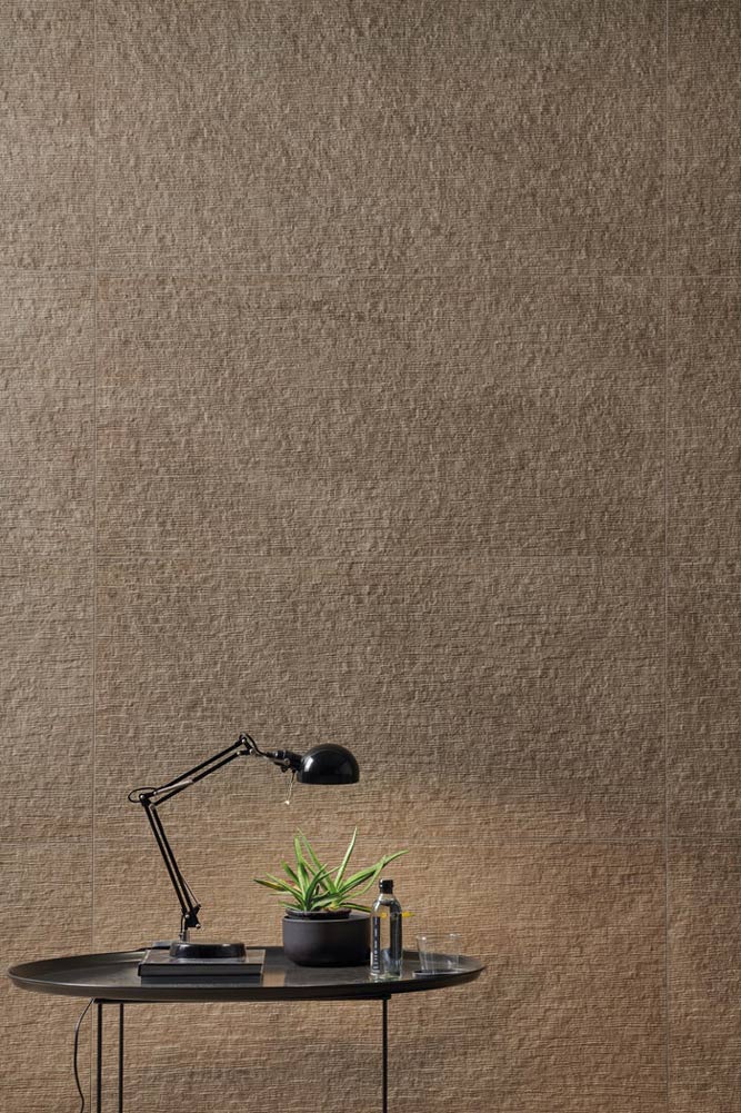 07. Tonalite schlägt in diesem Bild die Kollektion Nature aus glasiertem Feinsteinzeug mit leicht gewellter, glänzender, nicht einheitlicher Oberfläche vor, die angenehme Lichtspiele hervorbringt. Zusätzlich zum klassischen Format 10×20 cm wurde das Element 10×40 cm eingeführt, das die Planungsmöglichkeiten erweitert.