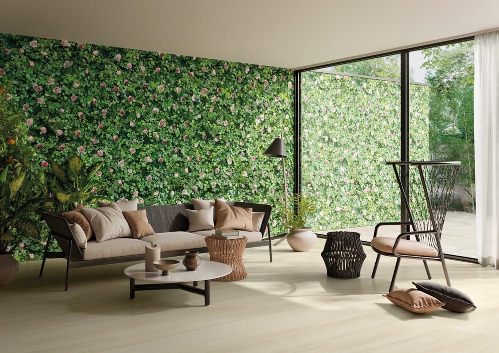01. Limpha, von Casalgrande Padana gehört zur Generation der bioaktiven Keramiken Bios Ceramics ®, die Schadstoffe in der Luft abbauen können sowie antibakteriell und selbstreinigend sind. In der Ausführung Coral Rose werden Innen- und Außenwände zu vertikalen Gärten, einschließlich realistisch anmutender Blütenpracht, ermöglicht durch Digitaltechnologie.