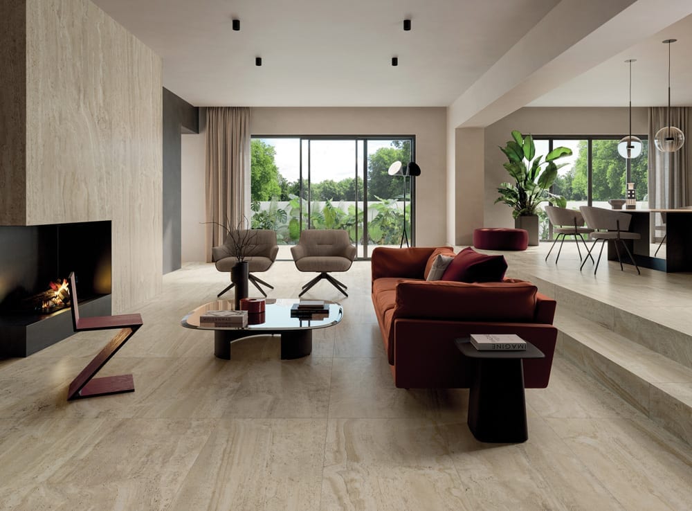 Apropos Innovationen: Die neuen Technologien erlauben die Fertigung immer größerer und dünnerer Keramikplatten. Einige Unternehmen konzentrieren sich auf die Oberflächenbearbeitung mit dem Ziel, interessante und funktionelle Materialkombinationen zu erreichen. Sie stellen Texturen her, die das Ebenbild anderer Materialien wie Holz, Marmor oder Naturstein sind, oder entwickeln interessante Leistungen, die auf höchstmögliche Umweltverträglichkeit abzielen.
