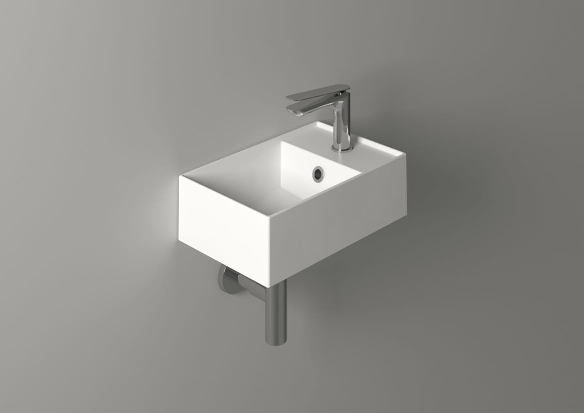 07. Die Kollektion Agile von Simas umfasst auch eine Mini-Ausführung: ein wandhängendes Handwaschbecken mit den Abmessungen 40×20 cm. Mit minimalistischer Optik, erhältlich in den Farben glänzend Schwarz und Weiß und in weiteren 11 Farbstellungen mit matter Oberfläche sowie farblich abgestimmten Keramikabläufen.