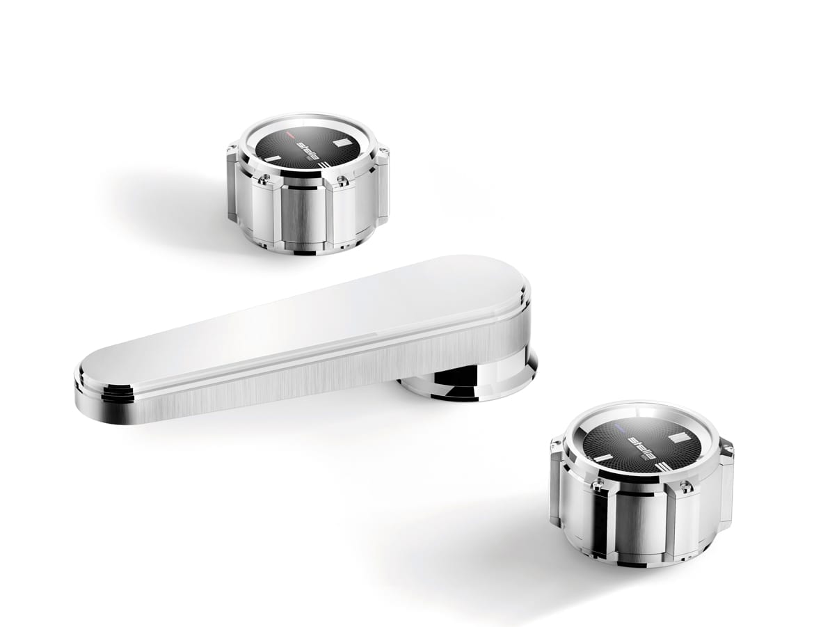 09. TimeAster von Rubinetterie Stella ist eine Kollektion, die sich von der Welt der Uhren inspirieren ließ. Die Griffe in Zifferblattform sind in zwei Größen (52 mm und 65 mm Durchmesser) erhältlich, passend zu verschiedenen Sanitärkeramikgrößen.