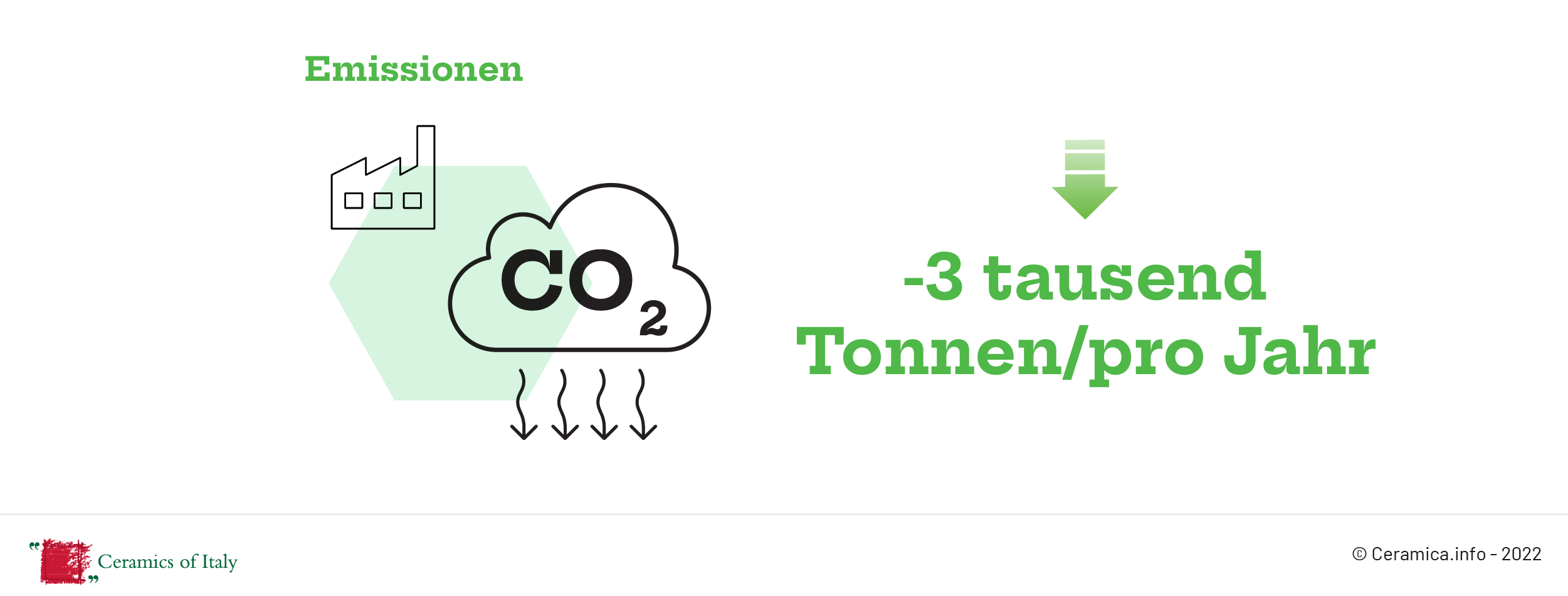 Mit der neuen technologischen Ausrichtung konnten die Unternehmen die Emission von über 3.000 Tonnen CO2 pro Jahr vermeiden. Diese Zahl wird dank der geplanten neuen Investitionen, die von der Fähigkeit der italienischen Keramik, Tradition und Innovation zu verbinden, unterstützt werden, noch steigen.