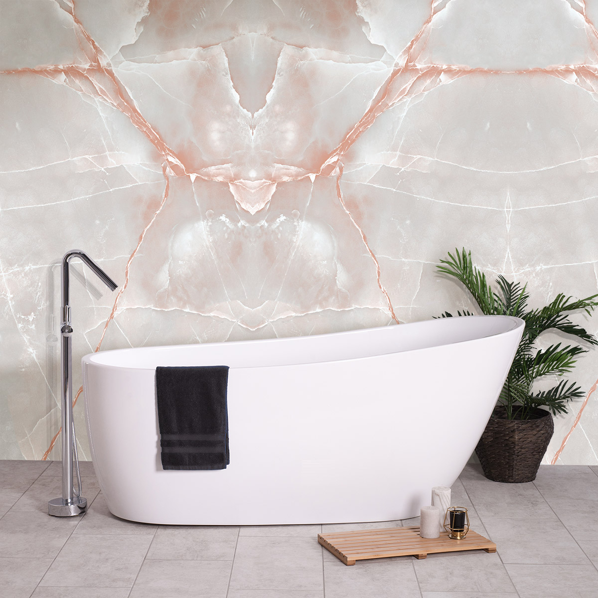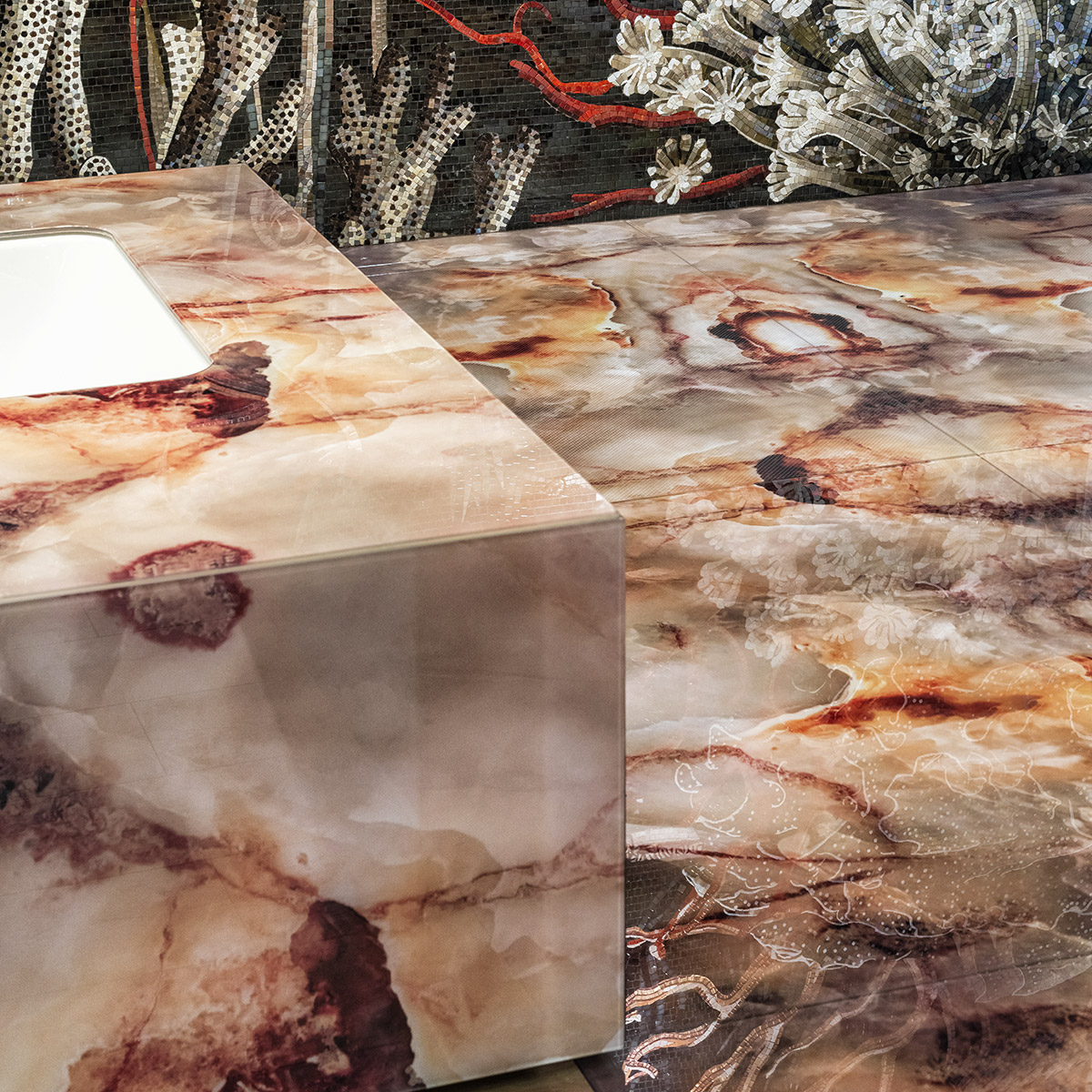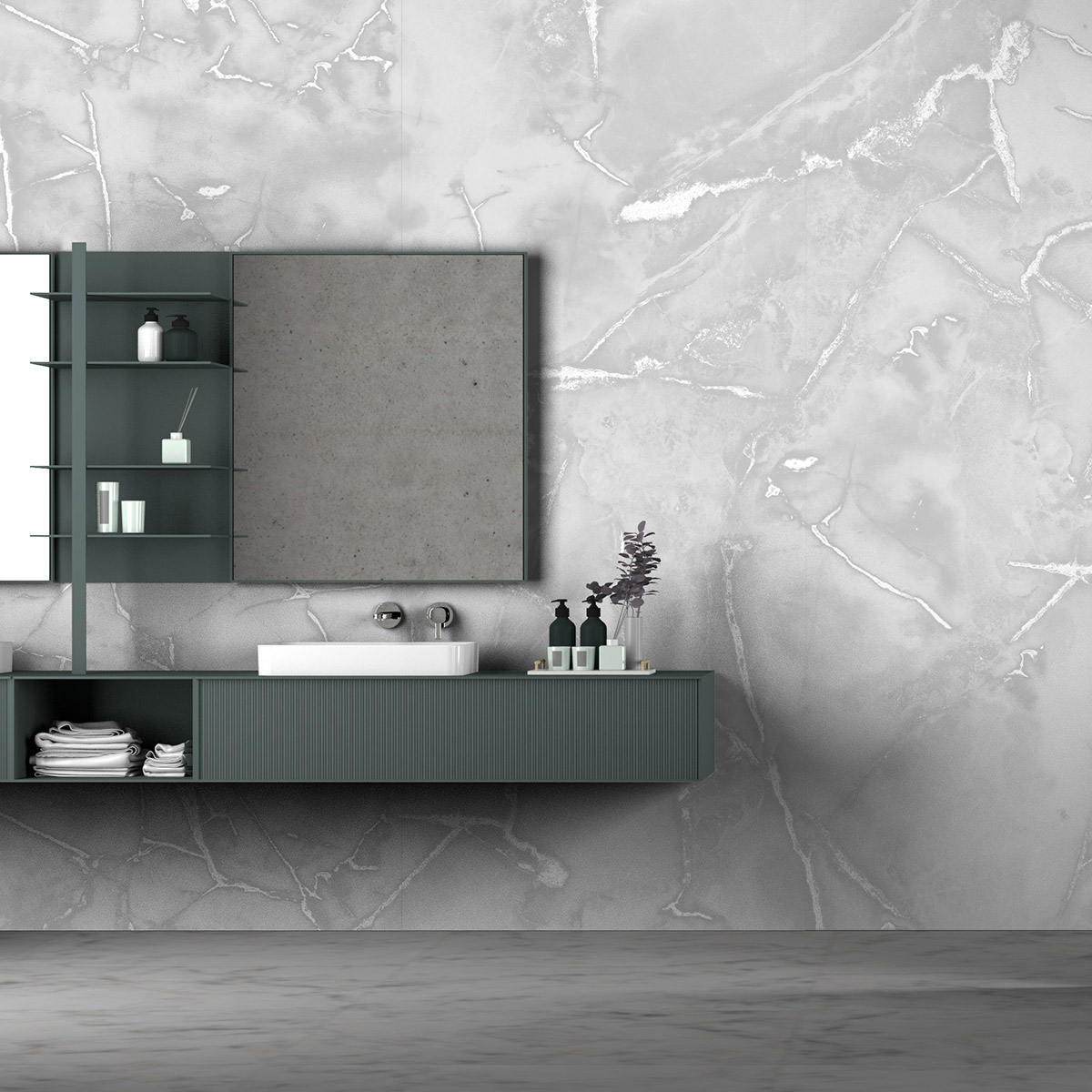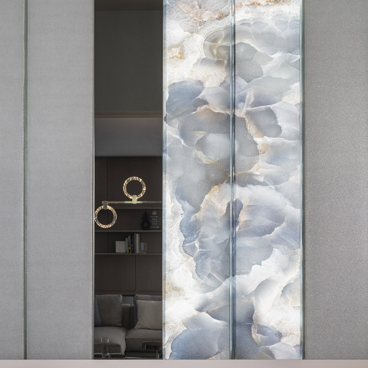 Die Kollektion wird in den Ausführungen Solid, Satin und Opalescente angeboten. Letzteres erweist sich als eine wirklich interessante Wahl, um faszinierende Lichtspiele zu erzeugen, da die Platten auf LED-Panels aufgebracht werden können, um eine Hinterleuchtung zu ermöglichen.