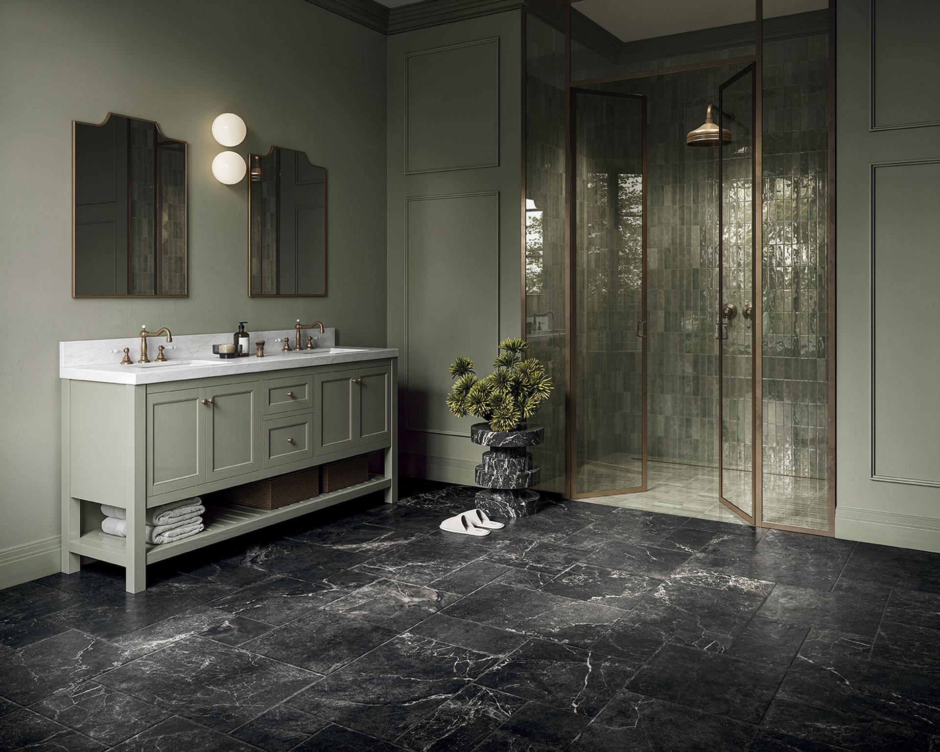 Die Kollektion Marmi Imperiali Versailles, Ausdruck der zeitlosen Eleganz der prächtigen Marmore, die in römischen Palästen und adeligen Villen verwendet wurden, entwickelt ihre gestalterische Sprache weiter und erweitert die kompositorischen Möglichkeiten der Oberflächen. Ein System aus vier modularen Formaten (mit antikisierten Kanten) führt neue Geometrien und Verlegerhythmen ein und interpretiert den englischen Country-Stil in zeitgemäßer Form neu.