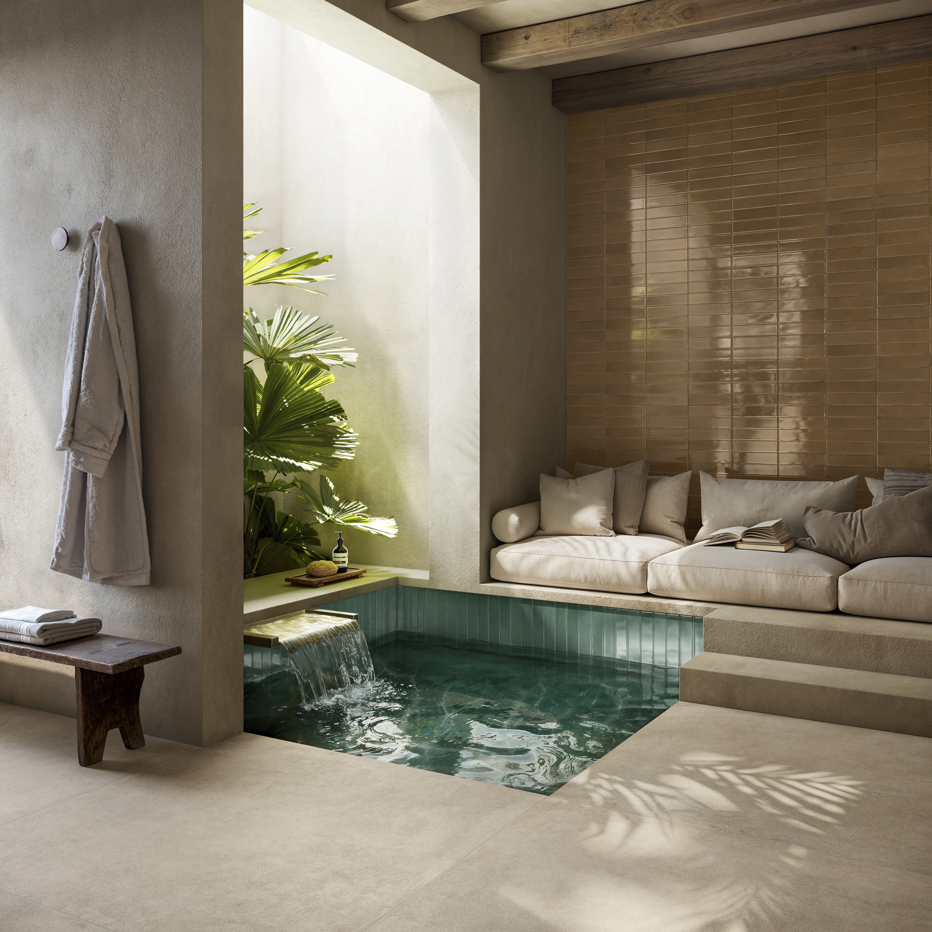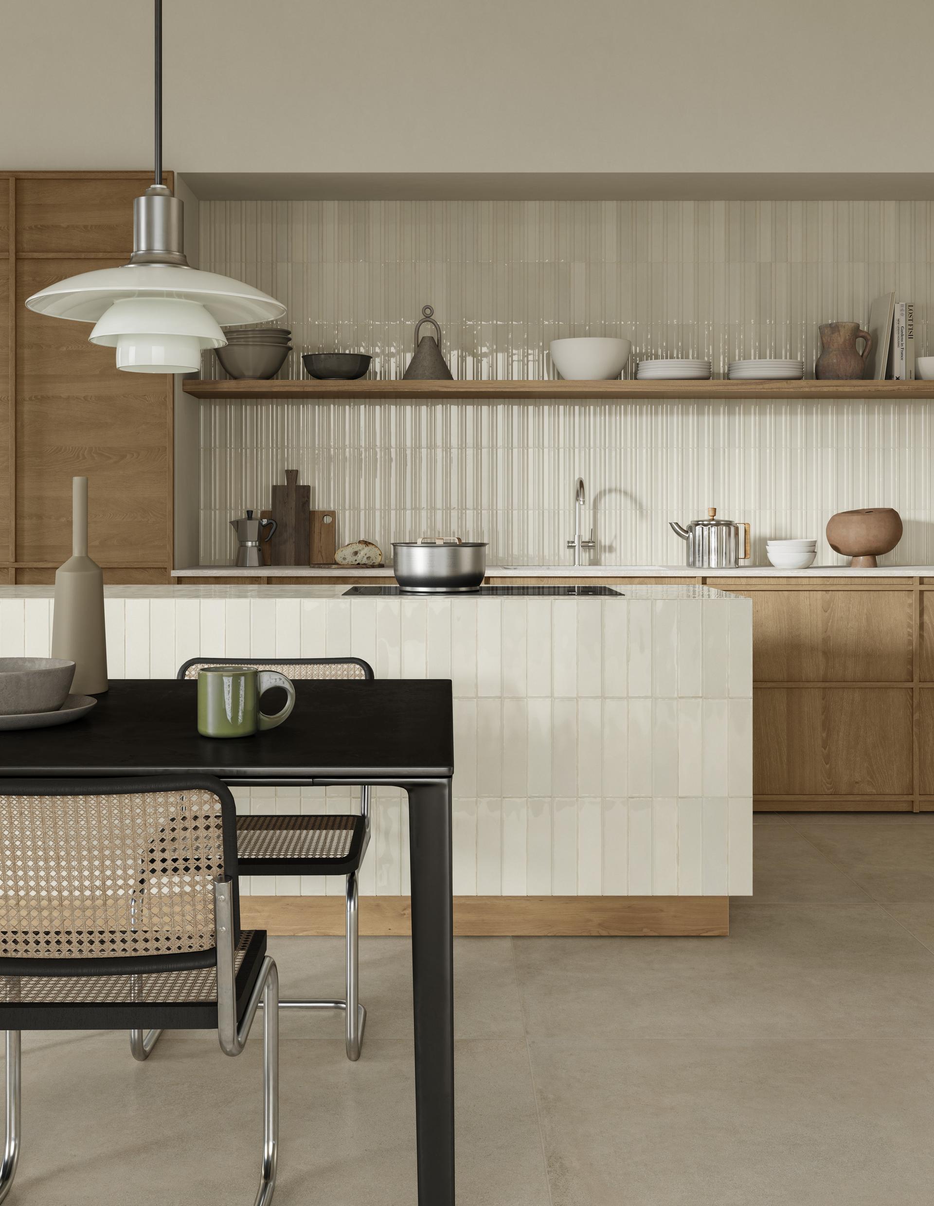 Erhältlich in sechs pudrigen Farbtönen — Lino, Sabbia, Ambra, Rubino, Turchese und Salvia — wird die Kollektion durch die 3D-Struktur Way ergänzt, ideal für dekorative Wände und architektonische Details.