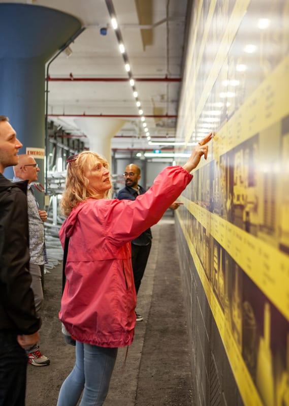 Situated one level beneath Toronto City Hall, Nathan Phillips Square Bicycle Station | Archive 513 is a key component in the revitalization of Canada’s largest city square. This subterranean facility provides 200 secure bicycle parking spaces, which are separated from the adjoining car parking garage by a panel of metal mesh. Challenged with creating a unique way to display archival materials from the 1958 New City Hall International Design Competition, uoai architects worked with Lea Ceramiche to produce 22 custom-printed, large-format ceramic slabs. These yellow, 3.5mm-thick tiles cover the walls inside the station’s two-story central vestibule, featuring excerpts from the 1958 competition brief and high-definition images of the original design proposals submitted by 513 international entrants. Using over 60 linear feet of digitally-printed ceramic, this project explores the intersections between contemporary urban infrastructure and a pivotal moment in Toronto’s modernist architectural history.