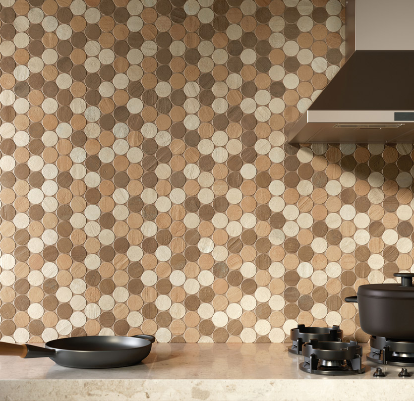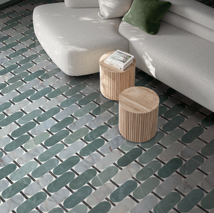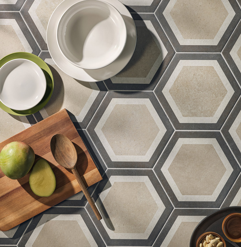 While traditional ceramic decors, like hexagonal formats, remain constant, Italian manufacturers are becoming increasingly imaginative when it comes to form. Contemporary takes on classic shapes with pops of color are becoming more popular, while angular, geometrical forms are being mixed with rounded shapes to create a more defined look. Italian manufacturers are also creating round decors with particular and impressive compositions, while lines play with varied geometries to define fuzzy, complex, or very classic patterns in their traditional simplicity. Others are redefining the rules altogether, by merging a kaleidoscope of geometric shapes and colors to create a truly spectacular arrangement.