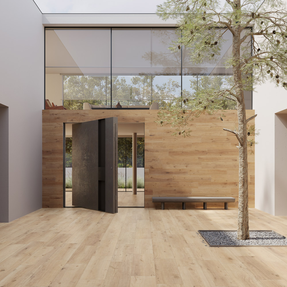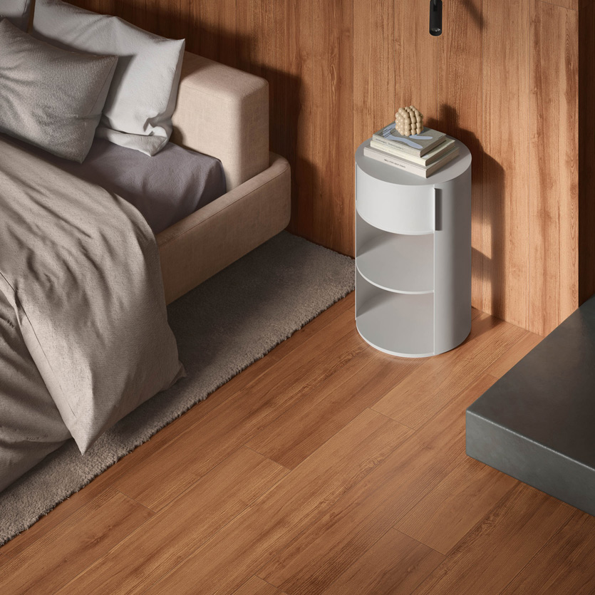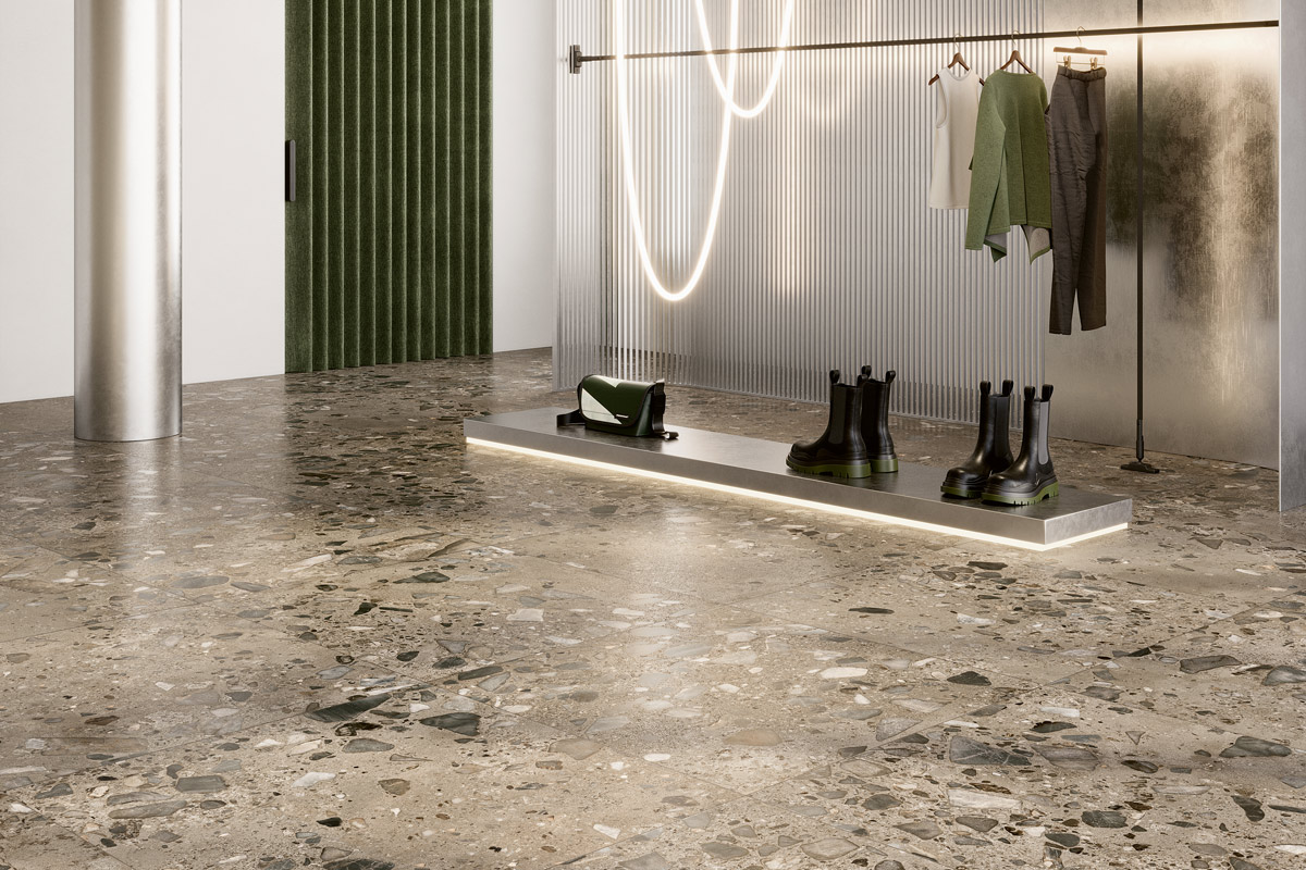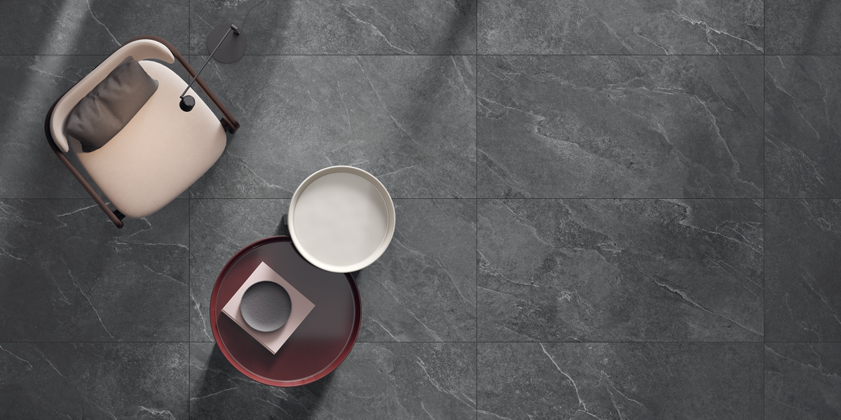 Nature has always been a key inspiration in design, and Italian manufacturers are continuing to innovate in graphic printing and finishing techniques to artfully reproduce the nuanced look and feel of natural materials in a hyper-realistic way. Marble and stone varieties feature a worn tactile, highly-variegated surface effect with typical irregularities, depicting ceppo di gre stone, sedimentary rock, cement, and slate with an almost crumbling surface appearance. Through-body veining techniques are allowing graphics and texture to expand to the edge and throughout the thickness of the tile. Additionally, innovations in wood continued to be predominant this year, with manufacturers drawing inspiration from oak, larch, walnut and elm for their new collections. A variety of classic plank and decorative parquet and chevron patterns, suitable for a total room look on floors and walls, feature deep grooves, highly textured surfaces, authentic knots and natural veins to rival the look of the real material.
