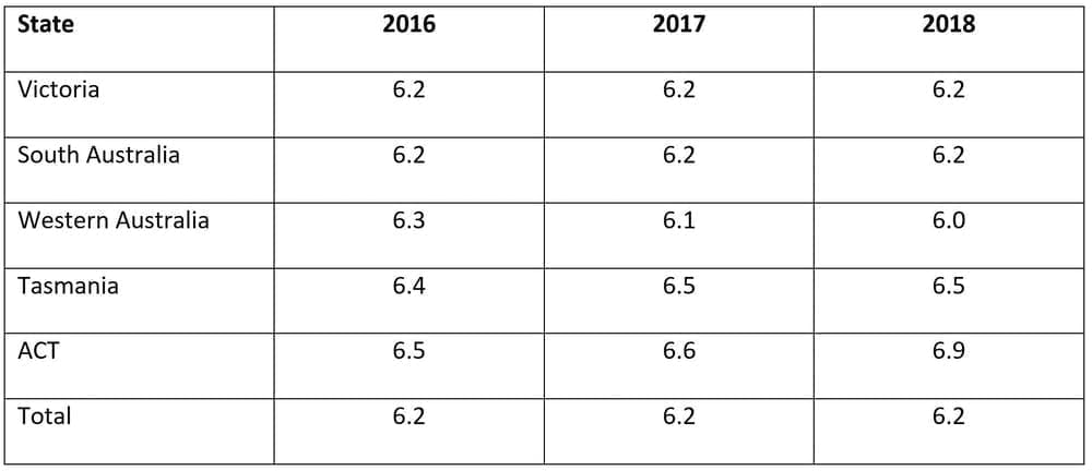 Fig. 3: Average NatHERS star rating for each state, 2016-18