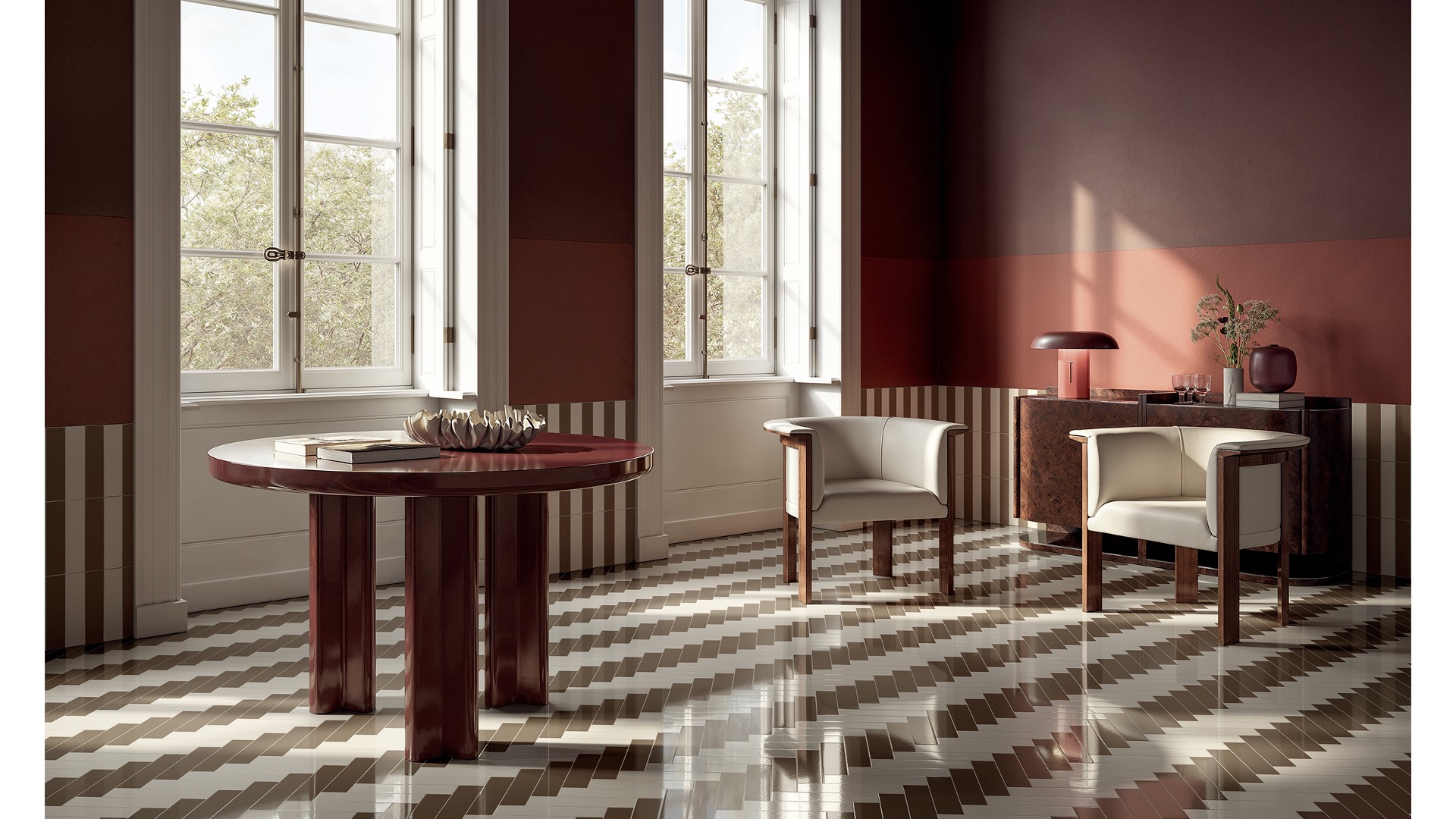 This sense of harmony also arises from the effective use of contrasts: curved, flowing lines set against more geometric forms; matt finishes juxtaposed with gloss; bold colour pairings or unexpected combinations. The design process takes on a multi-material approach, a playful dialogue between wood, sand, marble, leather and stone effects and between new and traditional layouts. Classic patterns are reimagined in contemporary or even “pop” interpretations, blending originality with the timeless quality, style and elegance for which Italian ceramics are renowned.