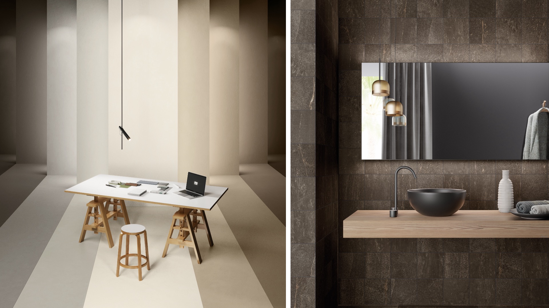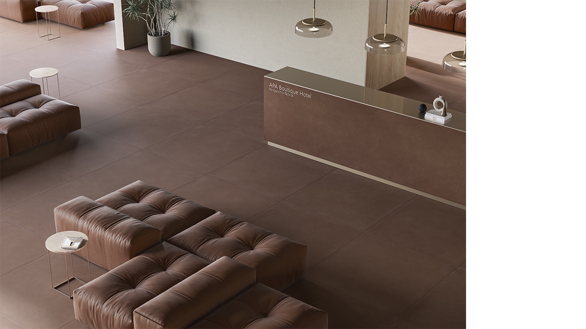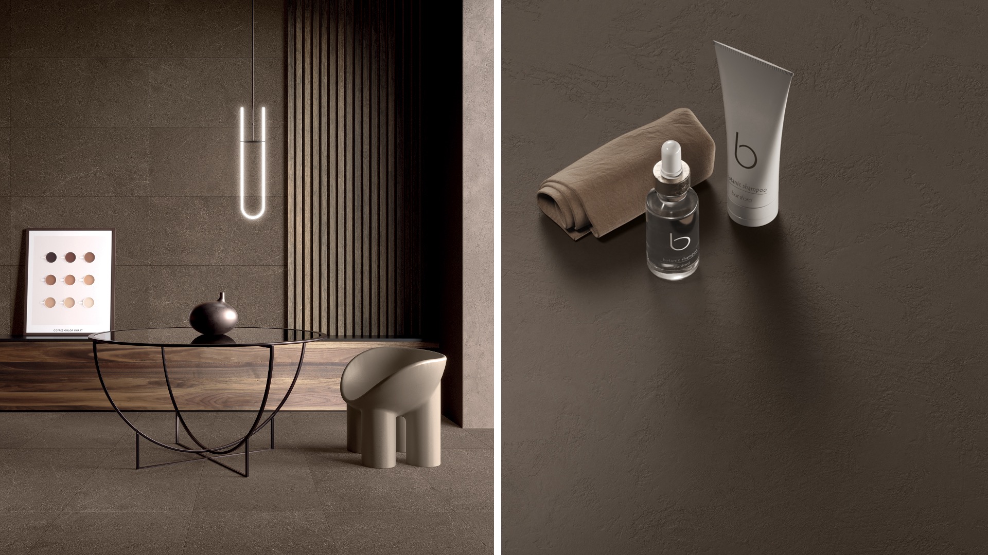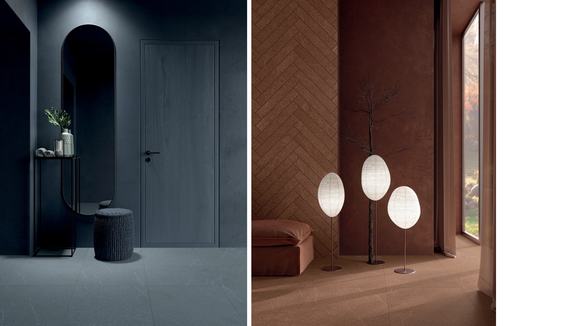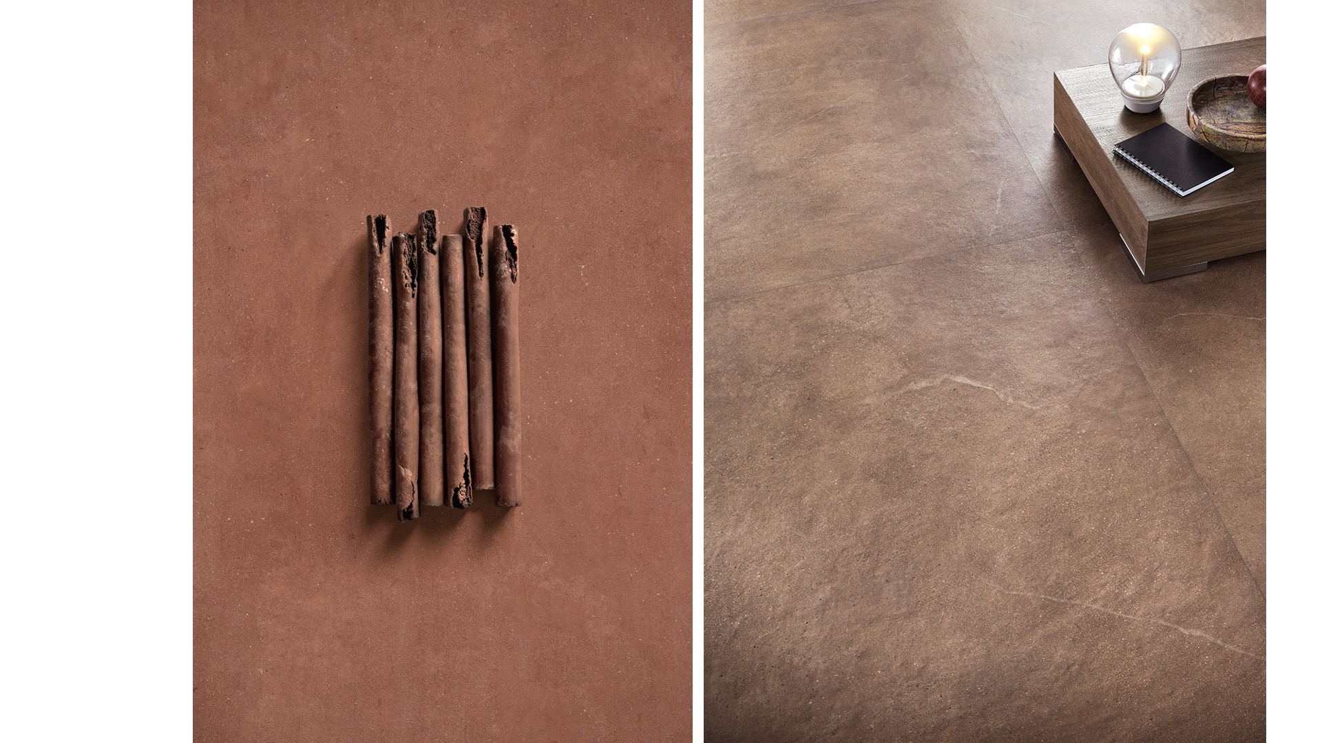 At the deeper end of the spectrum, colours take on a warm, earthy feel and the immersive look of natural materials, while more pronounced textures stimulate tactility. These natural tones evoke a sense of comfort and reconnect us with the world around us. In these uncertain times, we are also seeing a renewed appreciation for the past, for craftsmanship and authenticity. Porcelain stoneware interprets materials such as wet earth, rust, leather and terracotta in a modern, understated and elegant way.