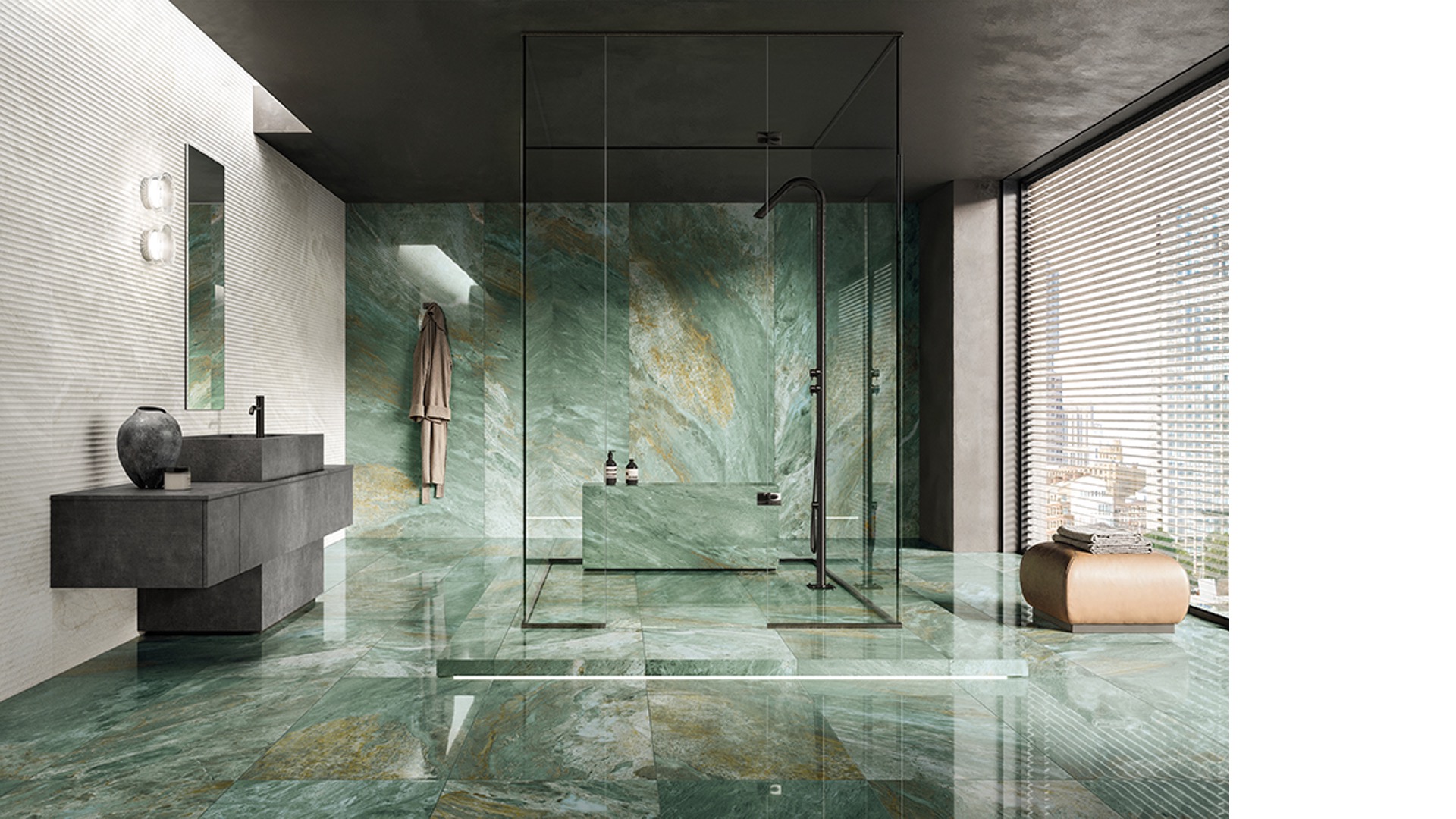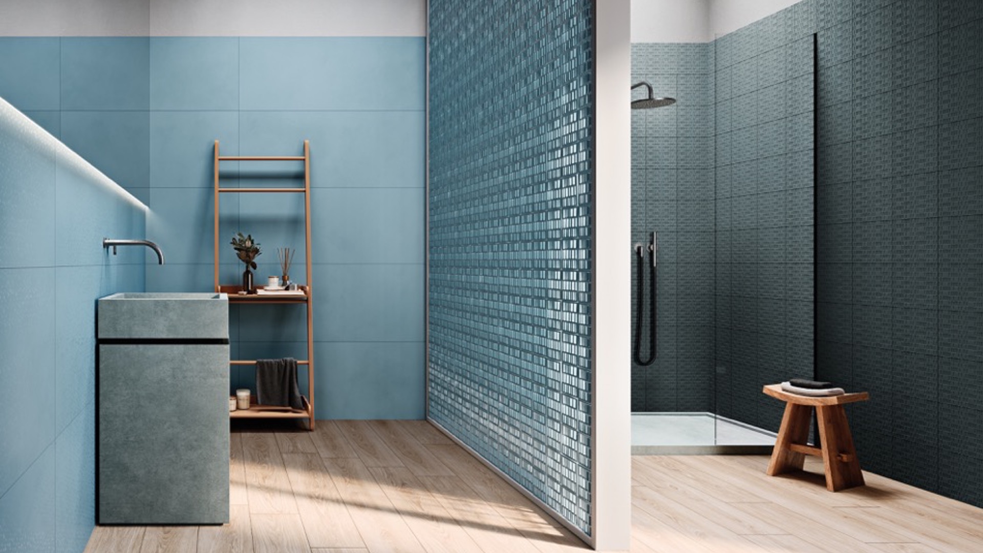 Italian ceramic tiles also embrace the popular colour drenching trend: the use of a single tone throughout a room – across walls, fixtures and furnishings – to create a sense of immersive continuity.