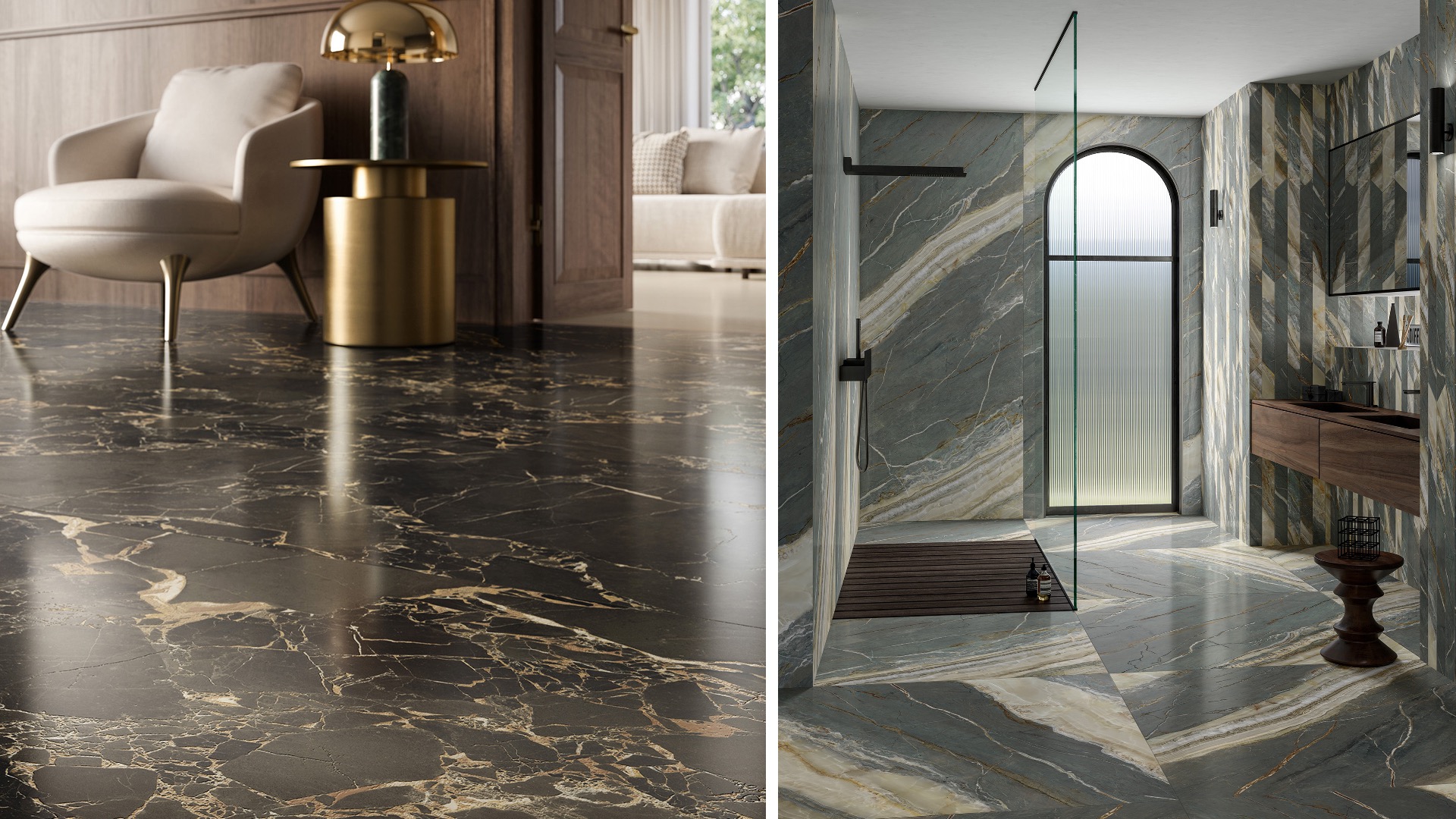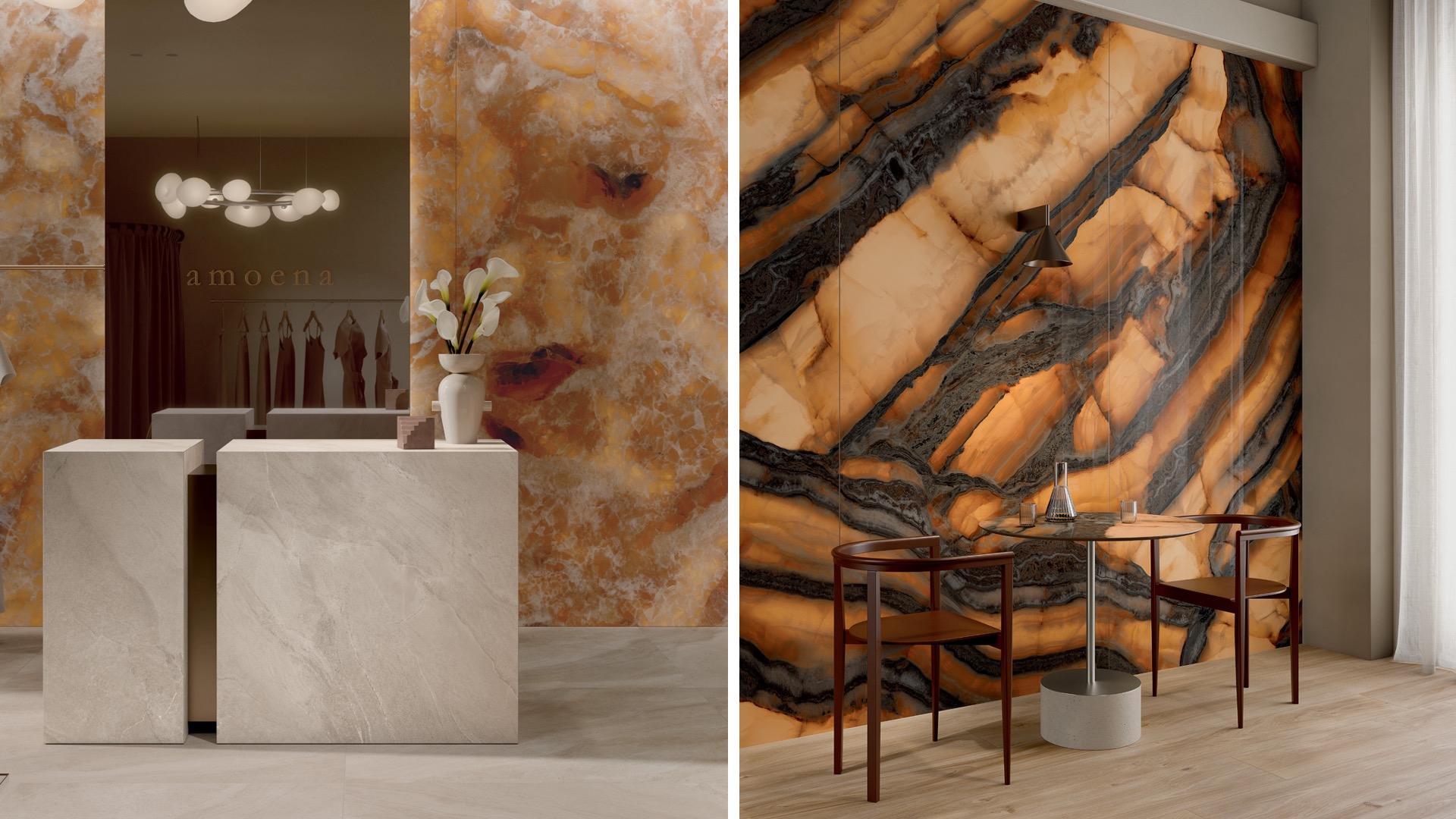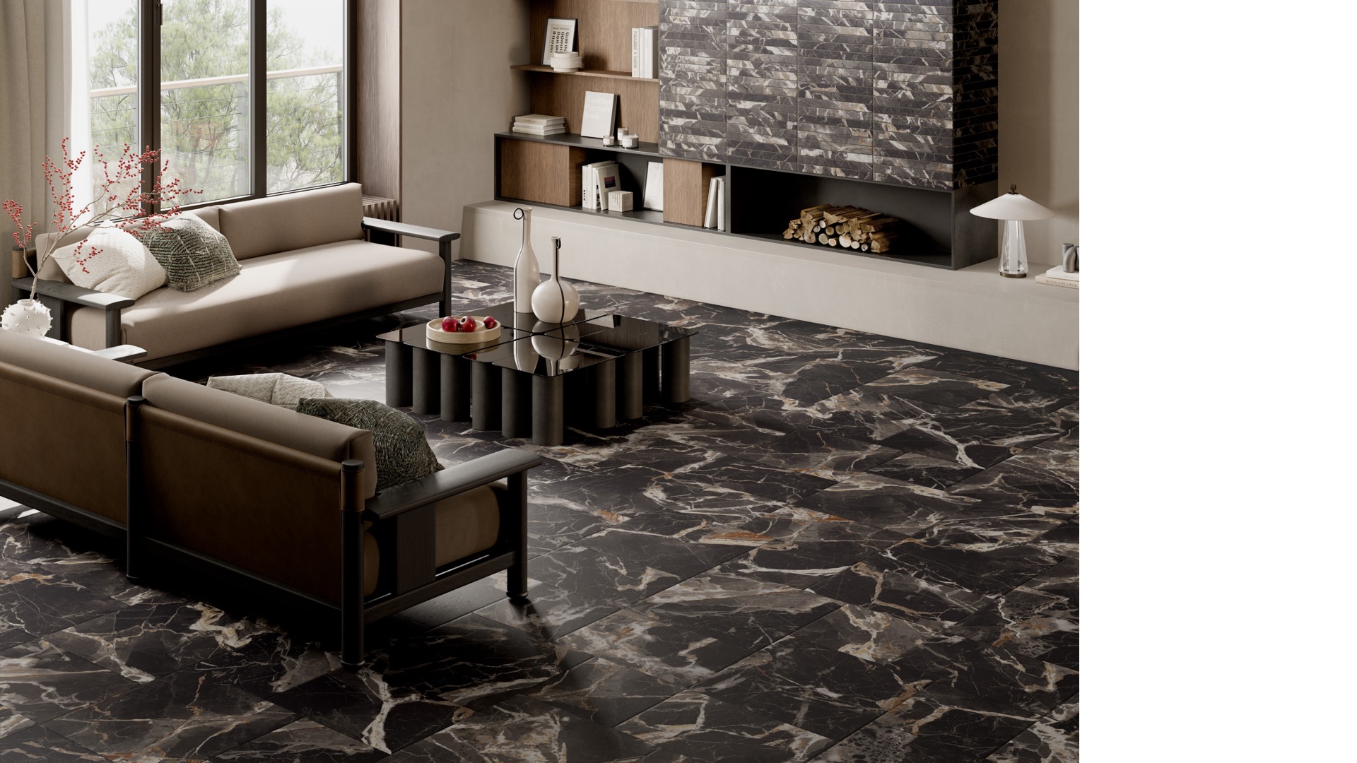 Marble-effect ceramic tiles offer not only elegant and realistic interpretations of natural stone but also a tactile and visual experience made possible by advanced technology. Their soft, refined surfaces stand out for their pronounced veining that catches the light, for their transparency and translucence, and for the dramatic mottled or backlit effects inspired by precious stone.