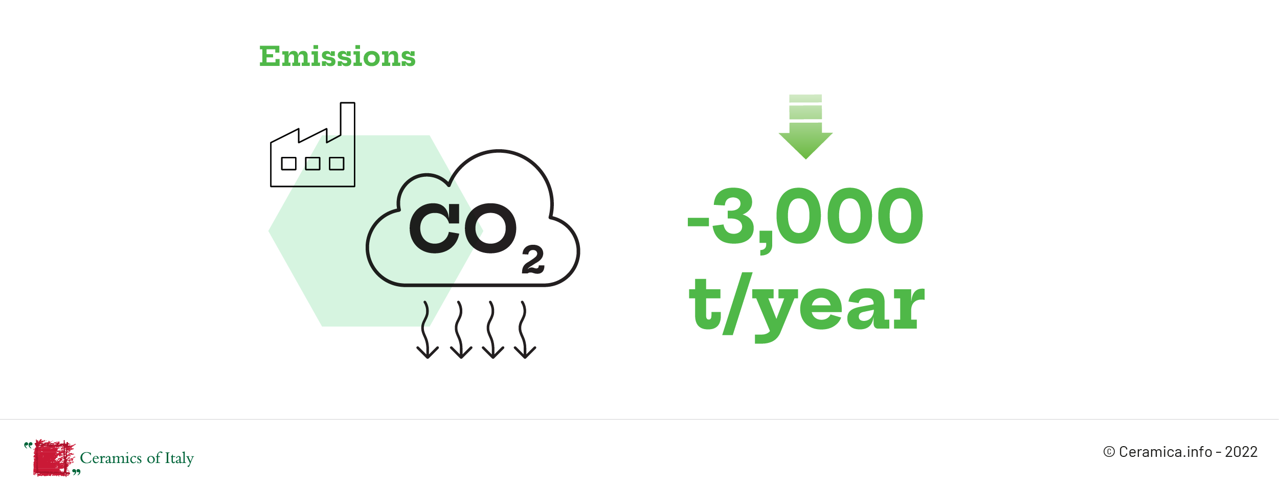 By adopting this new technology, companies avoid emitting more than 3,000 tonnes of CO2 each year. This figure is bound to increase in the future as the Italian ceramic industry makes new investments driven by its ability to combine tradition and innovation.