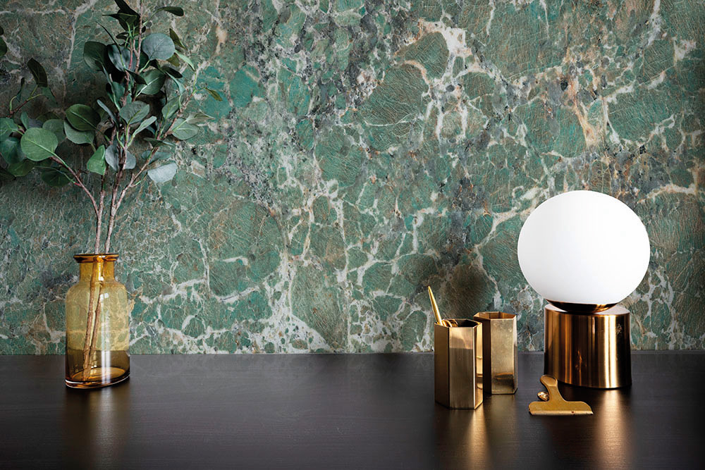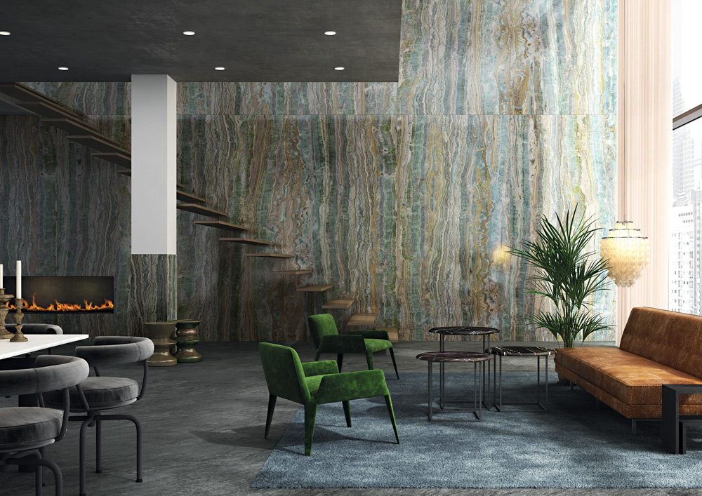 12. Onice Smeraldo from Ava Ceramica is the new collection devoted to indoor spaces and inspired by the exquisite colours of onyx. It comes in a variety of designs and six sizes, from 80×160 cm up to 320×160 cm. www.avaceramica.it