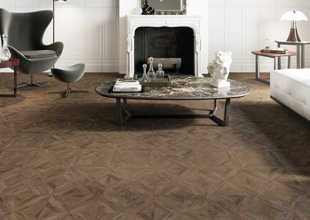 Wood-look ceramic surfaces likewise take on the same variations in colour. Inspired by a return to woodworking as a noble form of art and craftsmanship, they come in the contemporary pale tones of caramel, honey and raw oak as well as the darker classic shades of chestnut and walnut. The cutting process enables modules to be produced in many different combinations and elegant geometric patterns for the most sophisticated layouts.