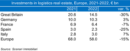 This in short is the situation in the logistics real estate market in 2022, with Italy in the forefront in terms of investments and Milan the sector’s star performer, although the rate of growth appears to be slowing in 2023. In 2022, Italy maintained its position as Europe’s fastest growing market with a 7% uptick in investments to a total volume of more than €3 billion, compared to a Europe-wide contraction of 15% with respect to 2021.