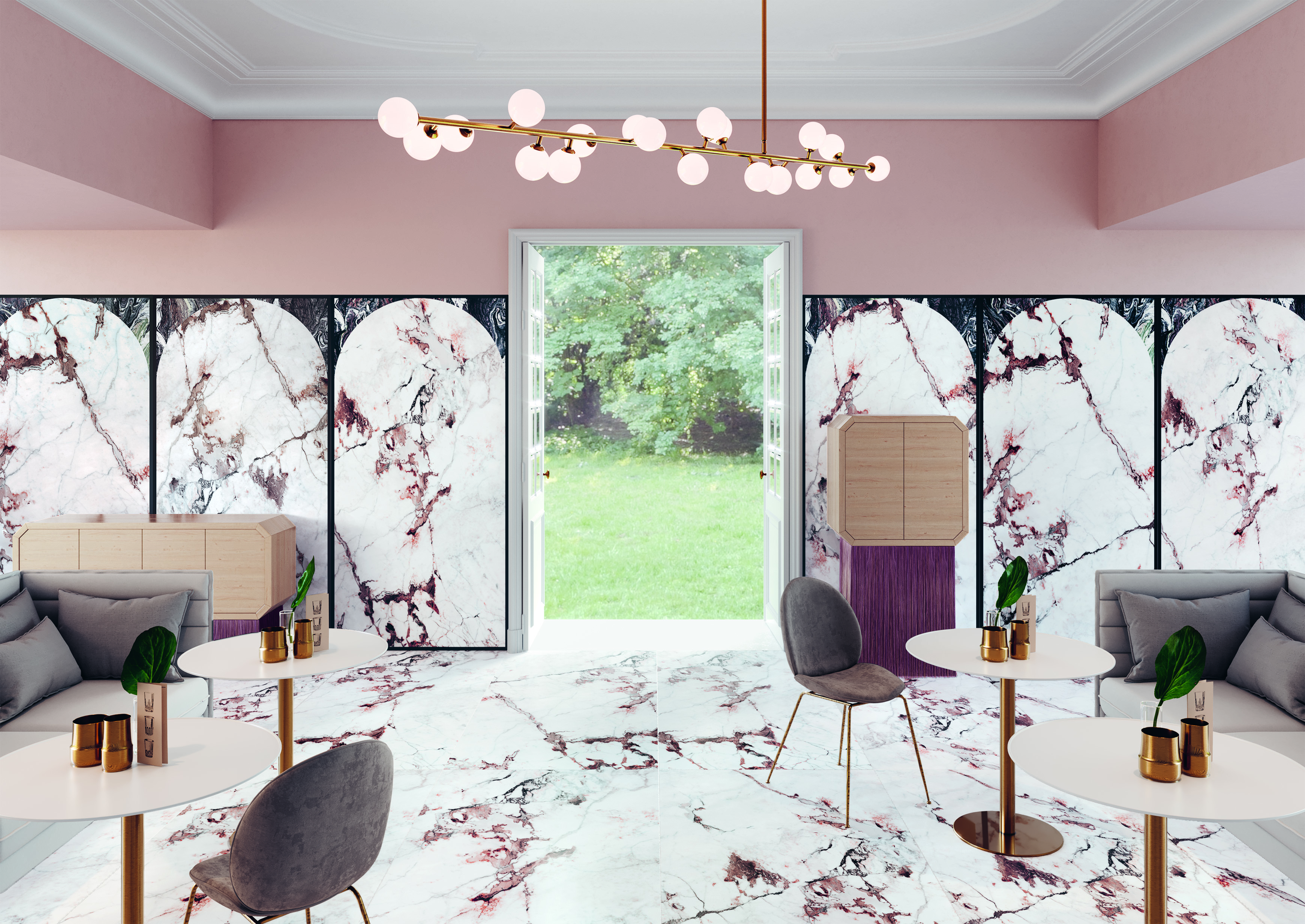 A jury of internationally renowned experts selected the collection among over 6,500 products from 60 different countries. Appreciated for its high design quality, the collection “Policroma” created by Cristina Celestino reinvents ceramic products by proposing an innovative aesthetics combining classical architectural canons with a more contemporary expressive code. CEDIT large slabs present stunning marble and marmorino inspired surfaces and truly scenic compositions.