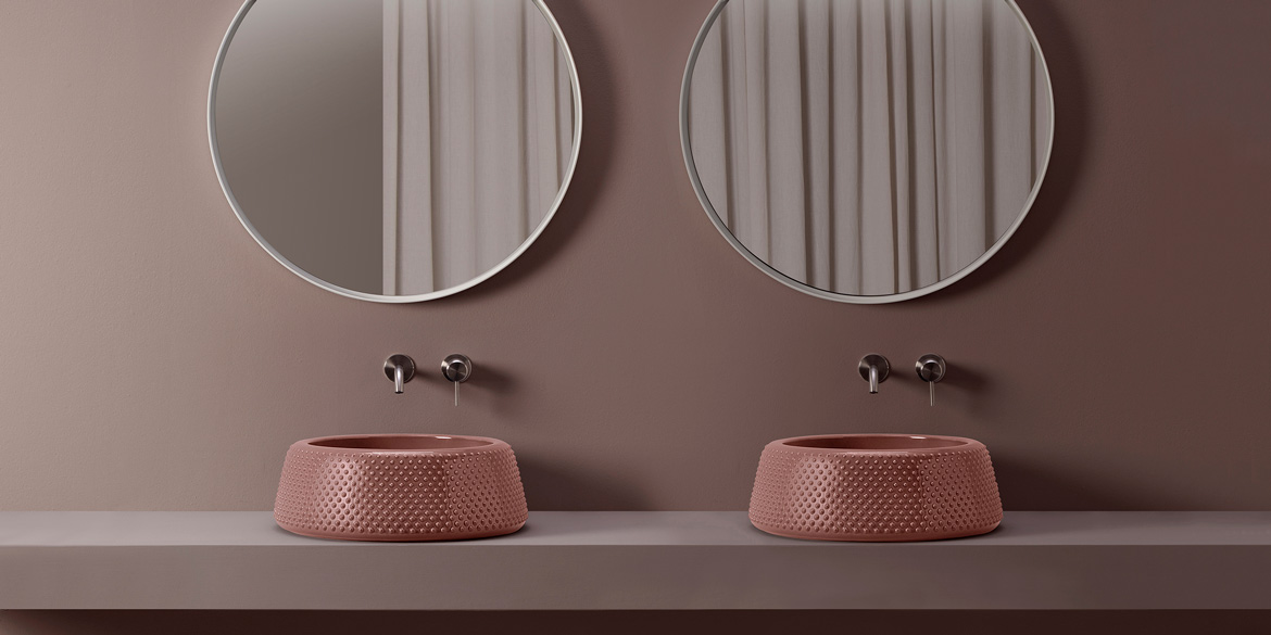 The Falala washbasin embodies an exploration of three-dimensionality in ceramic design, enhancing the material’s sculptural potential. Through its enveloping shape and distinctive dotted relief, inspired by traditional African woven baskets, this piece pays homage to sub-Saharan culture: Falala in Ghanaian means “born into abundance.” Available in a range of glossy and matte finishes, this piece is also available in a special Crystal version, characterized by a refined and dynamic interplay of light and shadow. Elena Salmistraro elevates an everyday item to a distinctive expression of design, craftsmanship and culture.