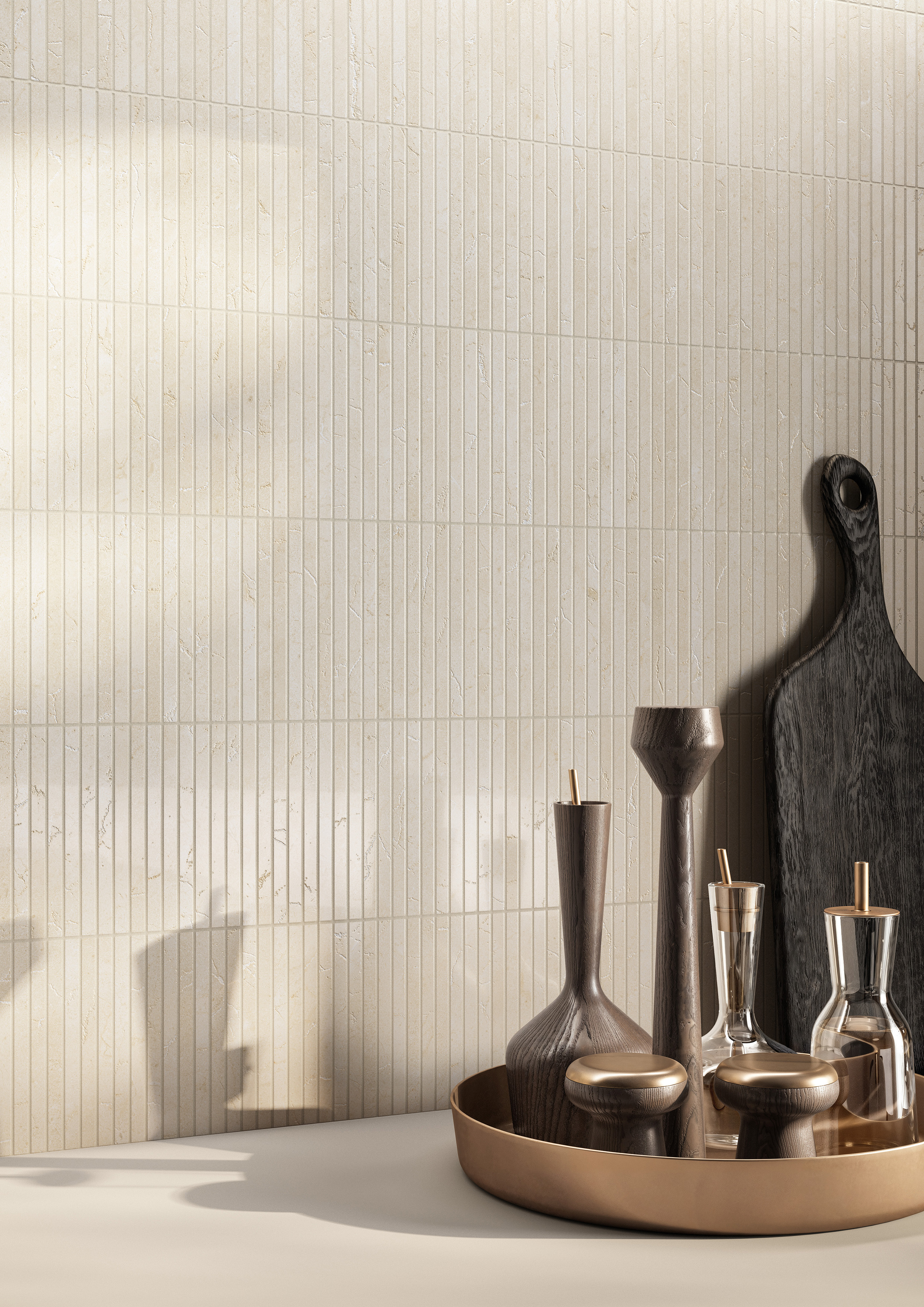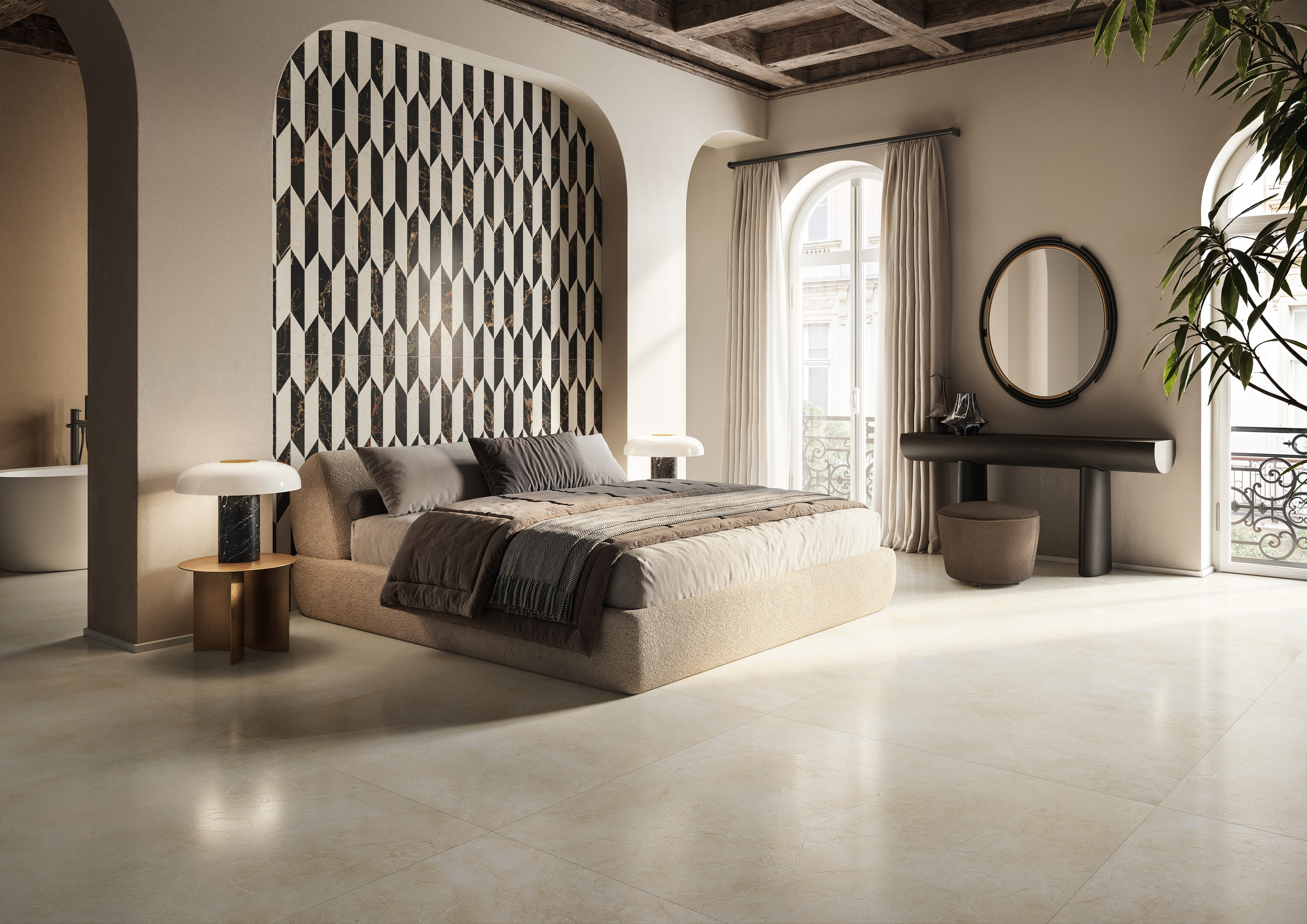 The strength of Doro and the refinement of Malfi come together in a collection that blends character, warmth, and beauty. Doro draws inspiration from Portoro marble, where golden veins cross a deep black surface with magnetic elegance. Malfi recalls the charm of Crema Marfil, a noble, luminous stone that speaks of harmony and tradition. Together, they create balance and light, turning matter into pure intensity.