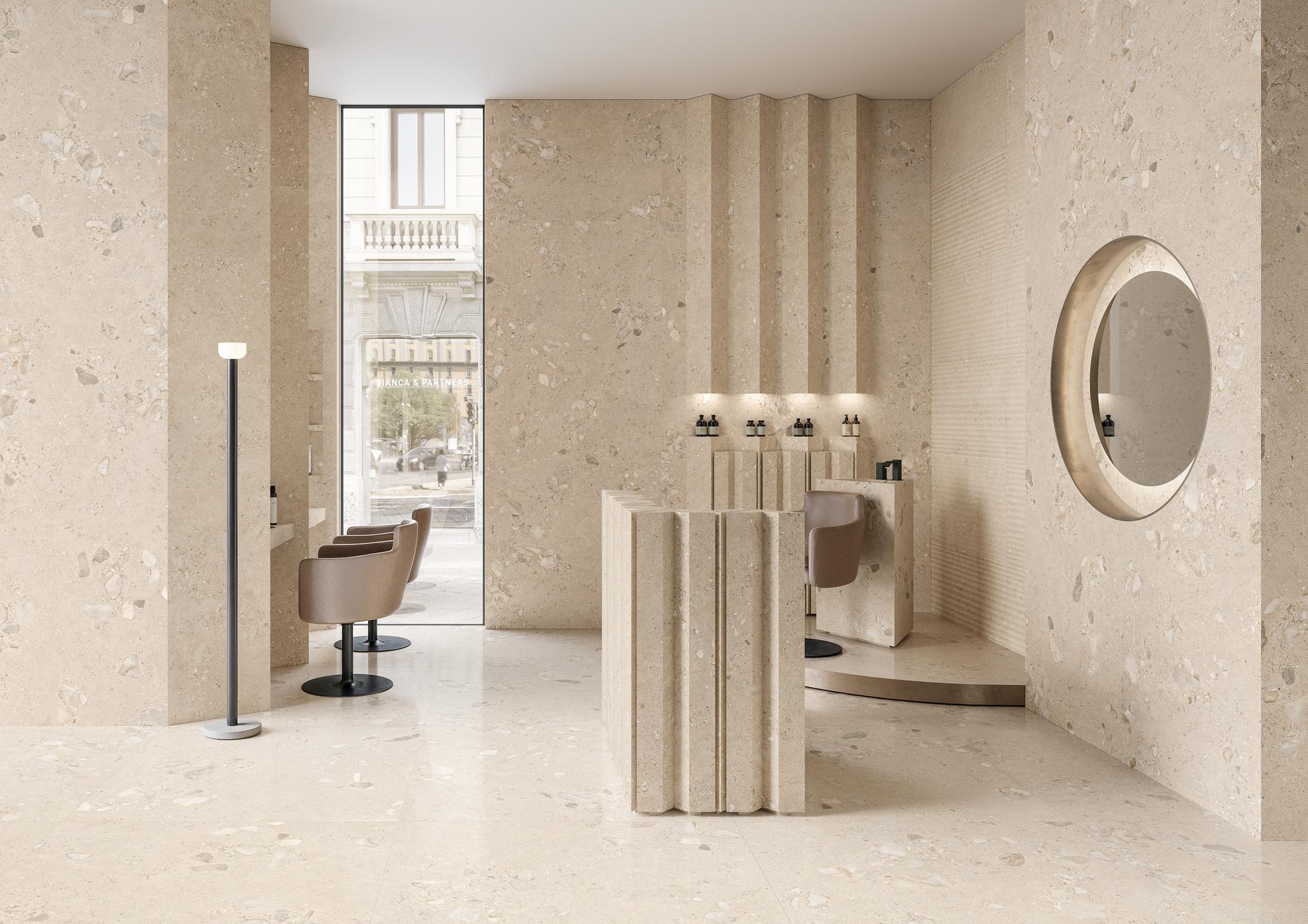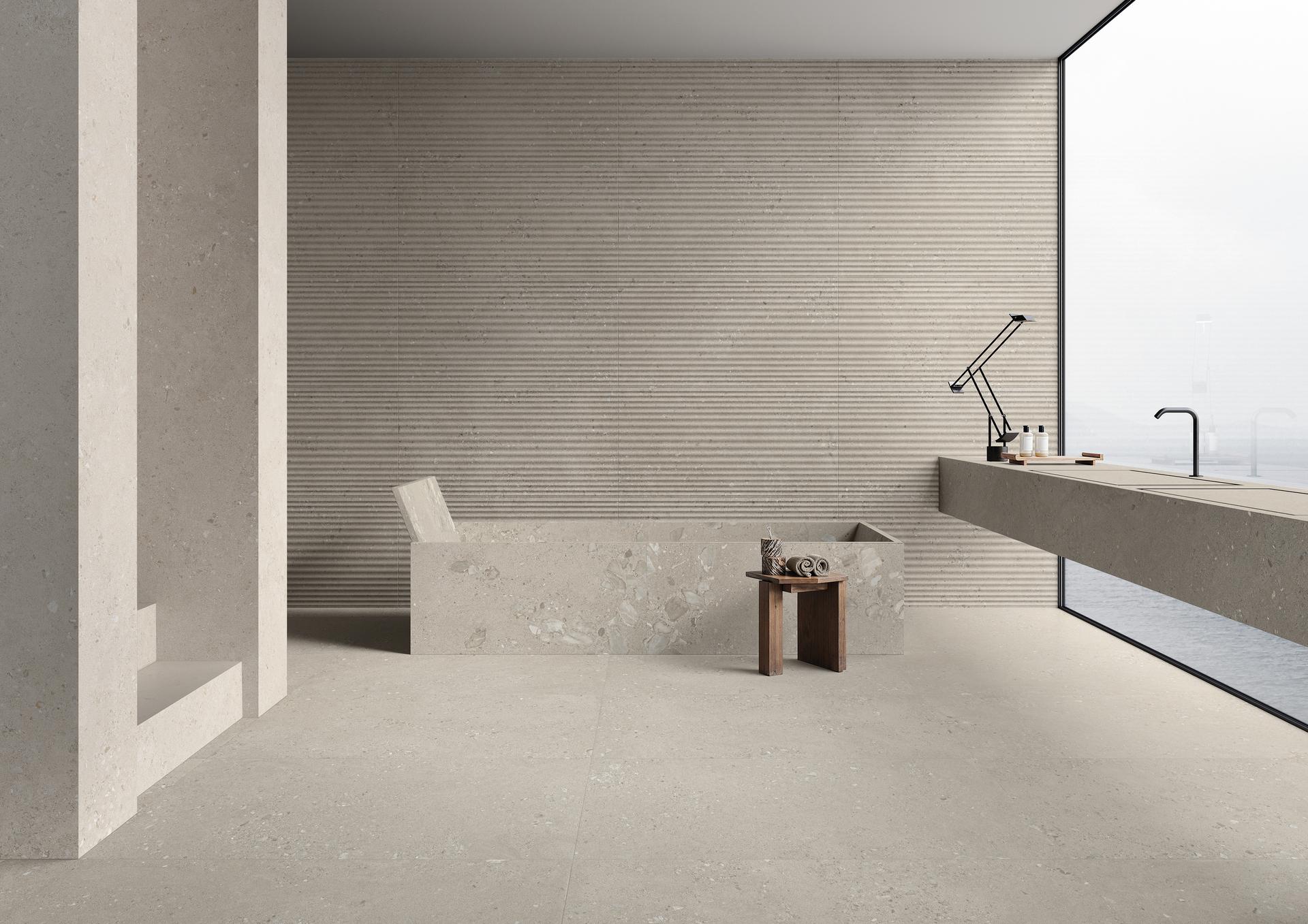 GemmaStone is the new collection by Ergon, inspired by Shellstone, a sedimentary rock of marine origin with a history reaching back over the millennia. This stone provides the starting-point for a tasteful, sophisticate contemporary ceramic rereading.