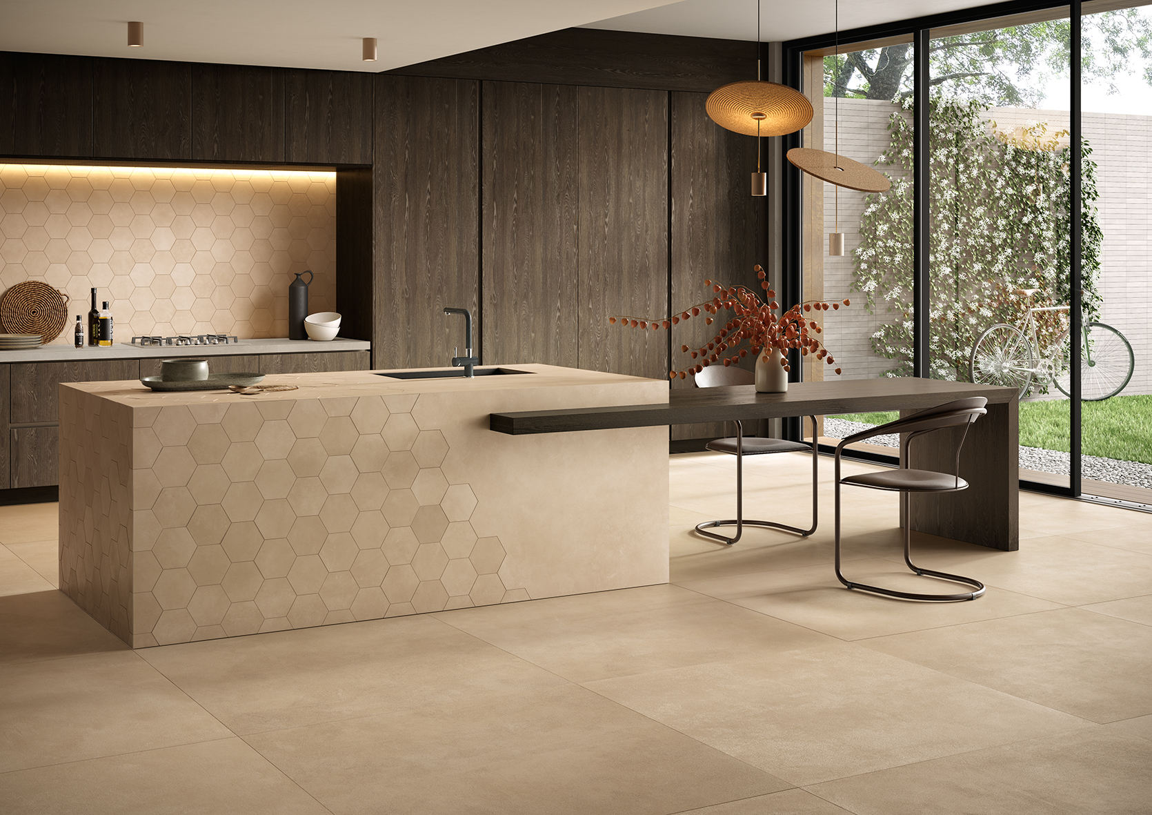 Habitat G conveys the elegance of concrete combined with the practicality of porcelain stoneware in 6 mm thickness. The range stands out for its contemporary look, evoking the beauty and authenticity of industrial concrete. The available colours recall typical elements of the industrial environment, incorporating essential and clean elements typical of minimalism. A distinctive detail of the collection is the tone-on-tone Macramè weave, which adds a touch of sophistication and visual interest without compromising the simplicity of the design.
