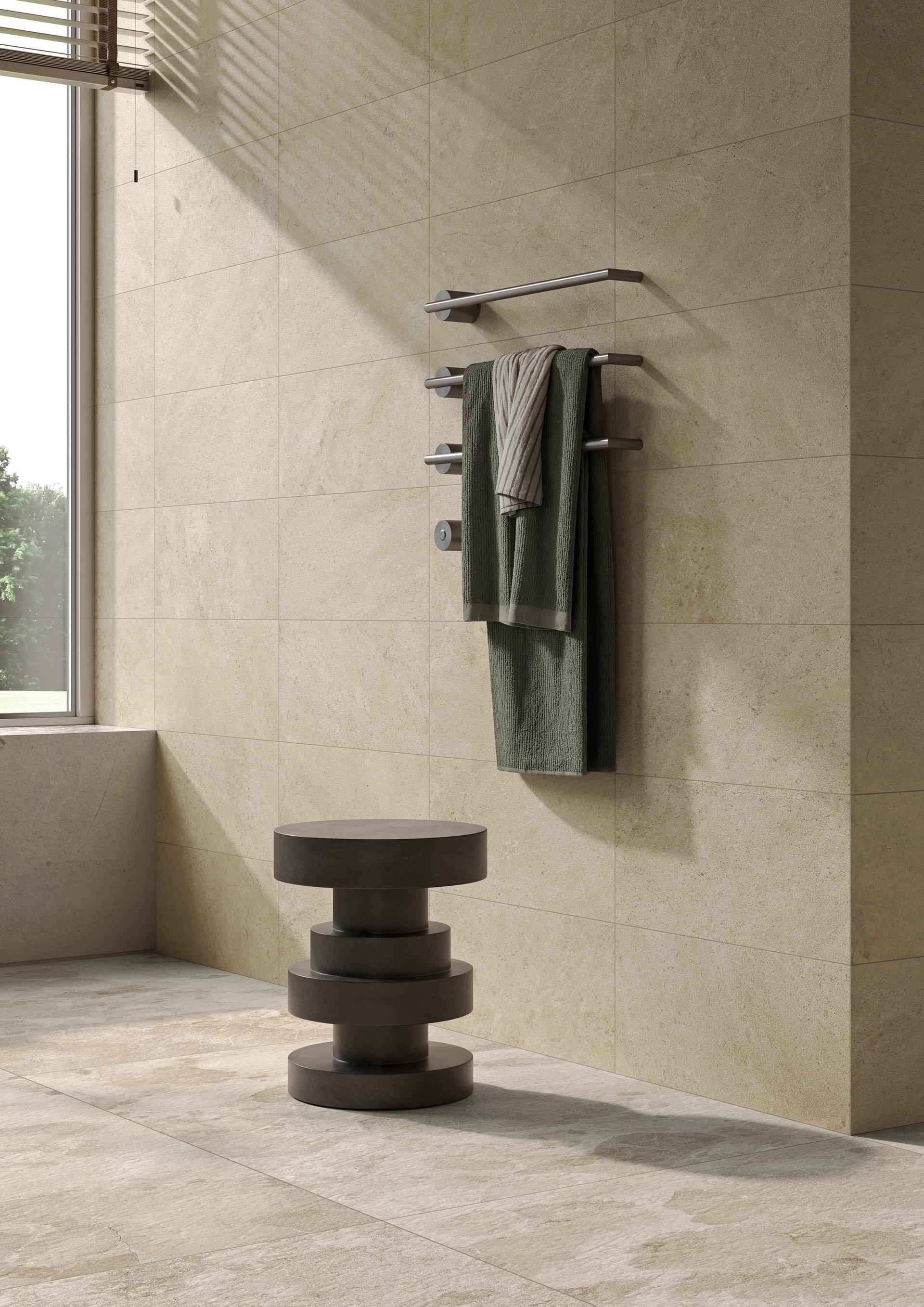 Lythos has been conceived as a design synthesis of natural material and ceramic innovation. A coherent system ofsurfaces that translates the authentic language of stone into porcelain stoneware, shaped by layers that speak the language of time.