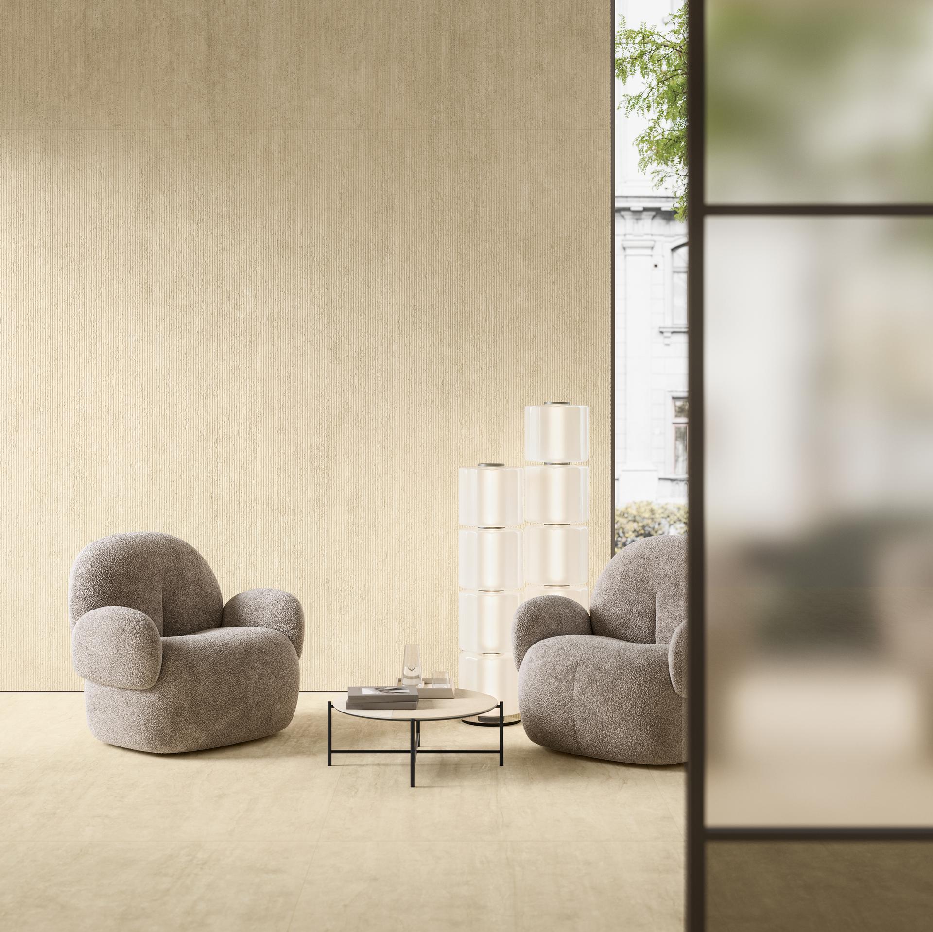 With Marvel T, Atlas Concorde consolidates its expertise in the world of travertine, exploring new aesthetics and offering an original and utterly contemporary reinterpretation of the material in terms of texture and emotional appeal.