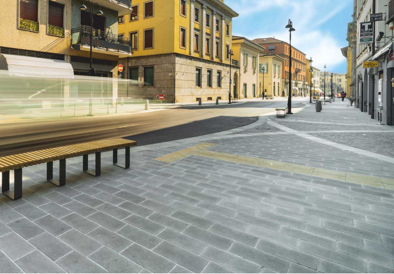 A great inner strength dedicated to well-finished, contextualised urban design projects. Boasting a wide range of sizes and thicknesses, the 50 mm thickness is the best choice to find the right aesthetic interpretation, laying solutions and technical performance within any design context. A modular and versatile vocation able to boost and strengthen the potentialities of urban design.