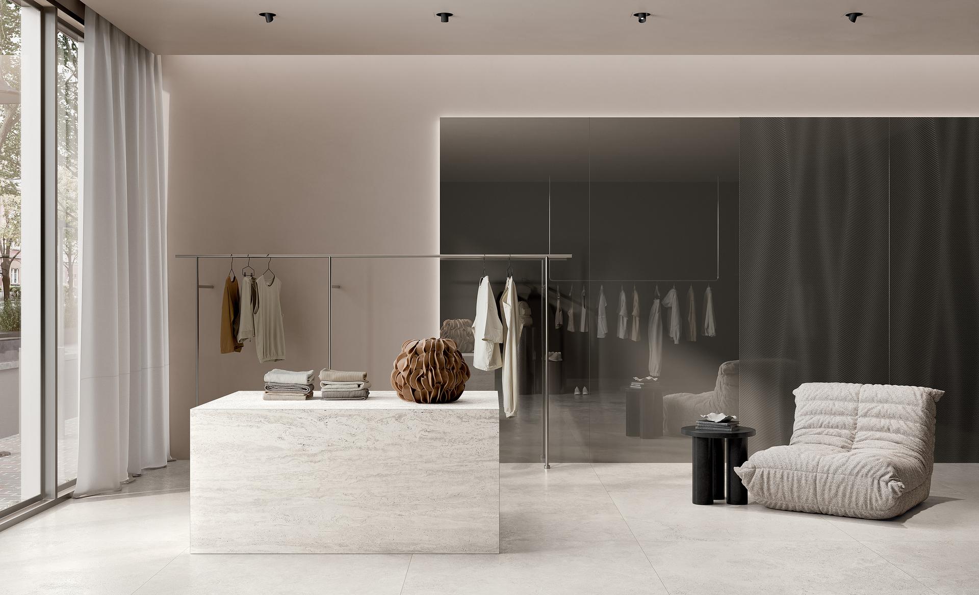 Available in the three colours Platinum, Bronze and Gold as well as the Chiffon decoration, Reflex is the ideal choice for those seeking contemporary elegance, luminous effects and a surface that constantly reinvents itself with plays of light and elegant optical illusions.