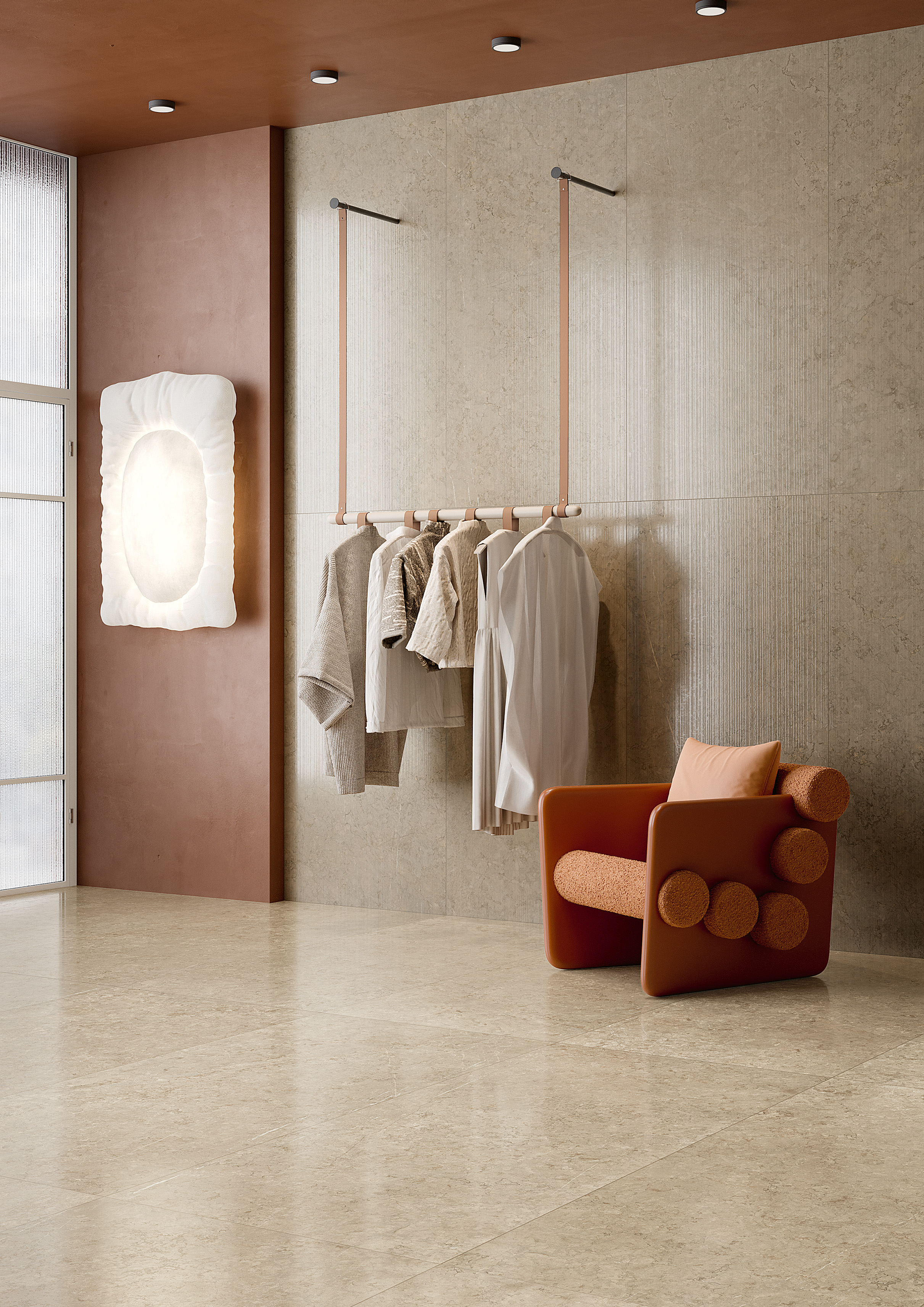 Sense transforms Grey stone into porcelain stoneware with a powerful material presence. The tactile surfaces are available in five natural tones and deep textures, creating warm and welcoming spaces. The finishes combine discreet elegance with functionality, enhancing the distinctive character of stone without overpowering it. Ideal for residential and contract furnishing applications, Sense invites users to experience the material’s authentic beauty and harmony.