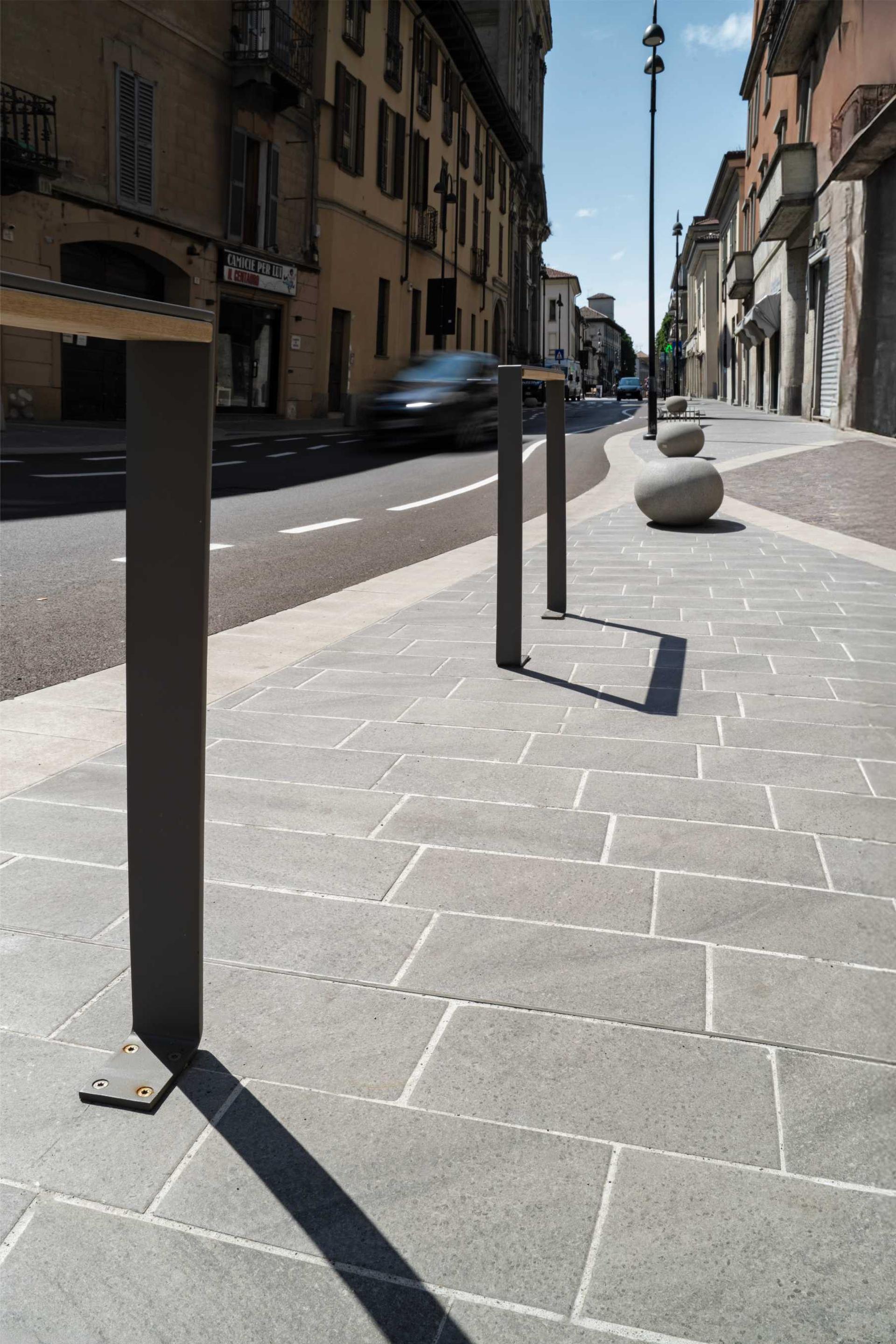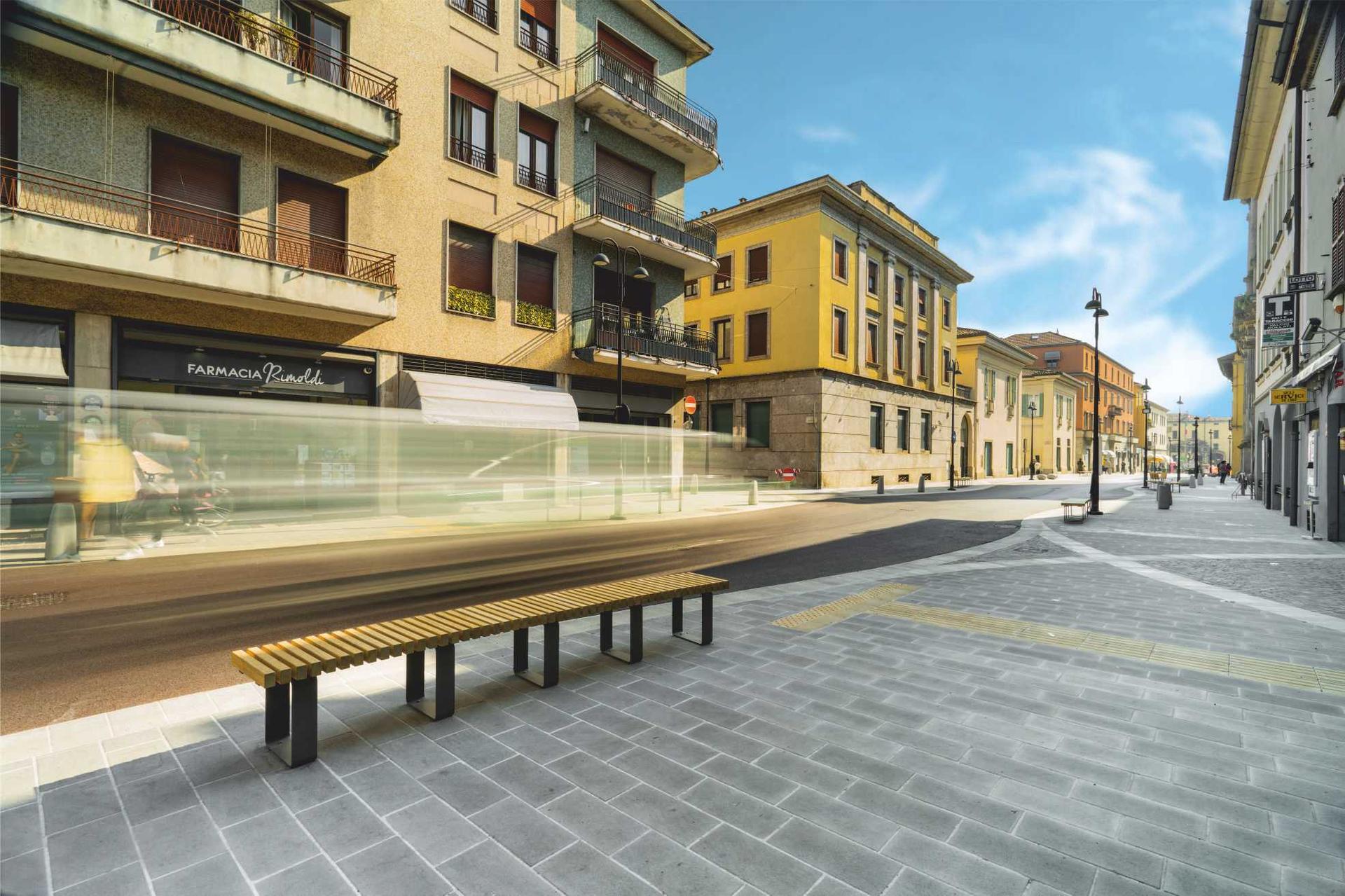 La bellezza ci salverà. A partire dai contesti urbani. Accade a Cassano d’Adda, in provincia di Bergamo, dove è stato riqualificato il centro cittadino, ora più bello e a misura di tutti, perché sono state anche eliminate le barriere architettoniche. “Il progetto di via Veneto nasce dall’esigenza dell’amministrazione comunale di riqualificare la principale arteria che attraversa la città”, raccontano gli architetti Angela Ceresoli e Massimo Bernardelli. “Prima dell’intervento, le persone potevano percorrere il centro cittadino grazie solo alla presenza di due vecchi marciapiedi piccoli e con barriere architettoniche. Spesso, le persone in bicicletta, per evitare di transitare in carreggiata, sceglievano di percorrere i marciapiedi, generando continui conflitti con i pedoni. Pessime erano pure le condizioni per la mobilità delle persone con disabilità. La sosta lungo entrambi i lati e l’intenso traffico (e la velocità) dei veicoli motorizzati creavano condizioni di insicurezza per tutti. Con il progetto si è voluto rispondere alla volontà della committenza di recuperare le funzioni più propriamente urbane. Con l’apertura della tangenziale e la conseguente deviazione dei flussi veicolari non locali, si è potuto rivedere anche il grado gerarchico dell’asse e restituire ai cittadini un grado di vivibilità maggiore nel cuore della città. Via Veneto liberata dal traffico è tornata a essere uno spazio urbano che vede la commistione di più funzioni, a partire dalle attività commerciali e i servizi che possono ampliarsi. L’abbandono della logora e rigida geometria stradale (solo per auto) ha così portato a un disegno degli spazi bello e originale, e a tutti accessibile”.