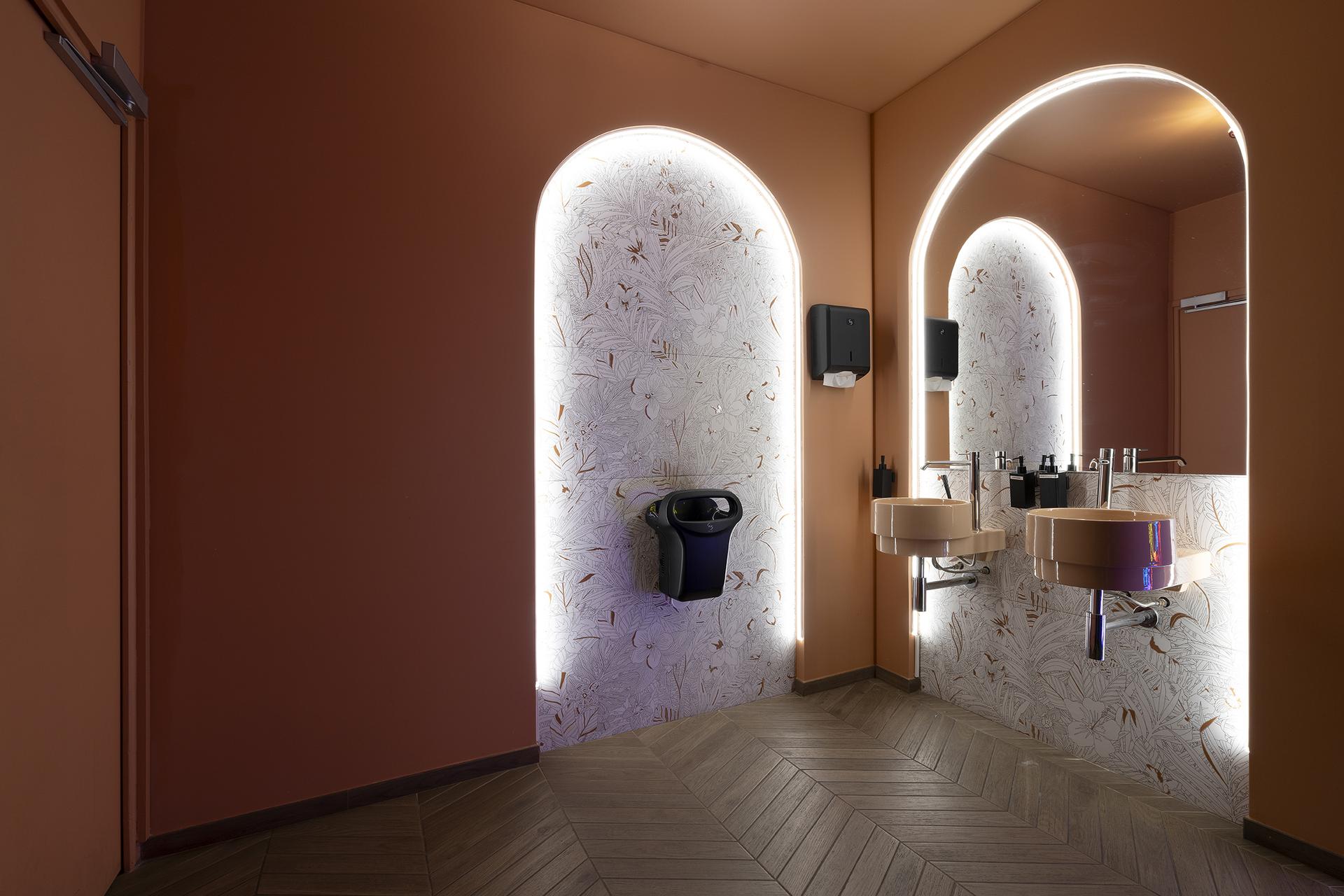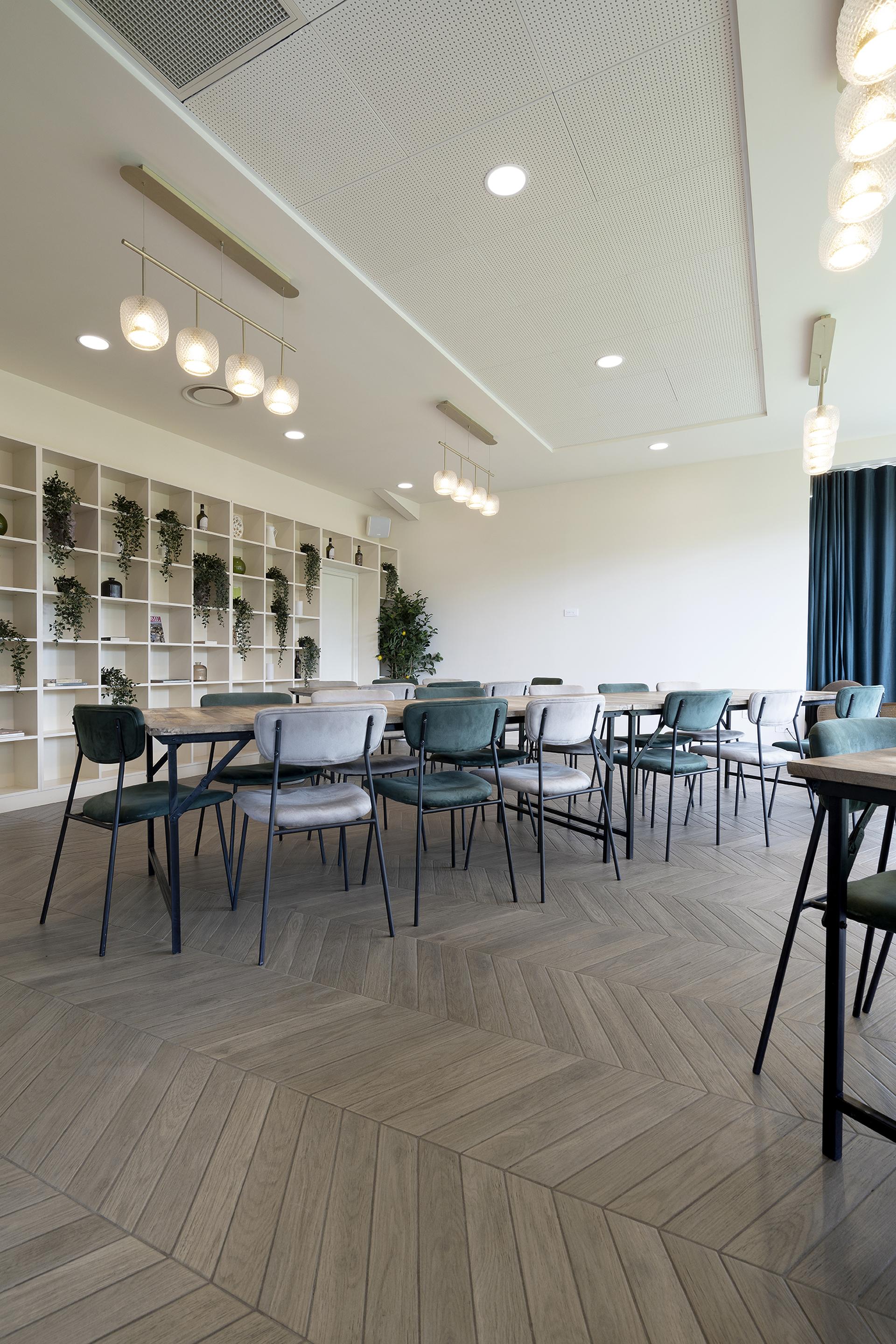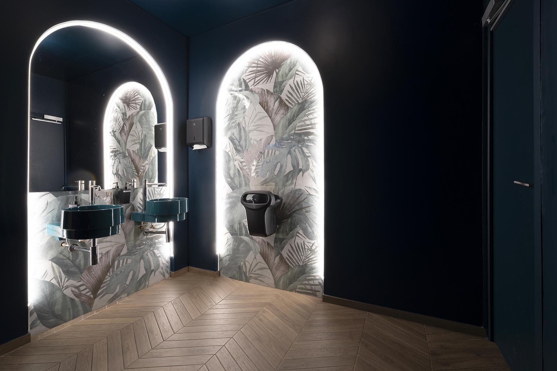 Zaza, an Italian restaurant designed by French practice Romaric Le Tiec Studio in the town of Montévrain about 30 kilometres east of Paris, balances warmth with geometric rigour, aesthetics with functionality. The design agency teamed up with interior architect Charlotte Vinet to convert a large 500-square-metre unit into a sensory experience, where every detail helps create a welcoming and refined atmosphere. “The challenge was to create a warm environment in a space full of windows and located in a busy area,” says Le Tiec. The solution is a sequence of spaces that gradually unfold: from the entrance threshold, the layout alternates between more intimate areas and convivial settings, culminating in a discreet private event room. Materials play a central role, carefully selected to evoke an Italian spirit while avoiding cliché. Porcelain stoneware floors from Marca Corona’s Terracreta, Terra.Art and Elisir Royal collections become textural landscapes. Terracreta captures the tactile appeal of clay, with decorations that suggest the passage of time. Terra.Art introduces colour and graphic motifs that add rhythm and personality. Elisir Royal, laid in a chevron pattern, recalls the bourgeois elegance of 20th-century Italy with a richly knotted and veined wood effect that combines tradition with modern design. In the bathrooms, the Mirabilia collection in the Foliage and Jungle variants transforms wall niches into decorative botanical-inspired compositions. In this exercise in style and lightness, ceramic tiles become a form of expression. “The choice of colours and materials recalls the atmosphere of Italy, with matt and glossy tiles and a palette of warm tones balanced by deep green and golden light,” the designers explain. The lighting design complements the spatial layout, creating reflections and nuances that shift throughout the day. The designers also addressed the issue of sustainability with sensitivity. “We always try to reduce our environmental impact through an intelligent approach,” notes Le Tiec. “For Zaza, we chose durable materials such as ceramic tiles for the floors, walls and counter and installed curtains on the windows to reduce heat losses in both summer and winter.” Zaza is more than a restaurant: it is a place designed for hospitality and atmosphere, where food, materials and design come together to create an authentic and memorable experience.
