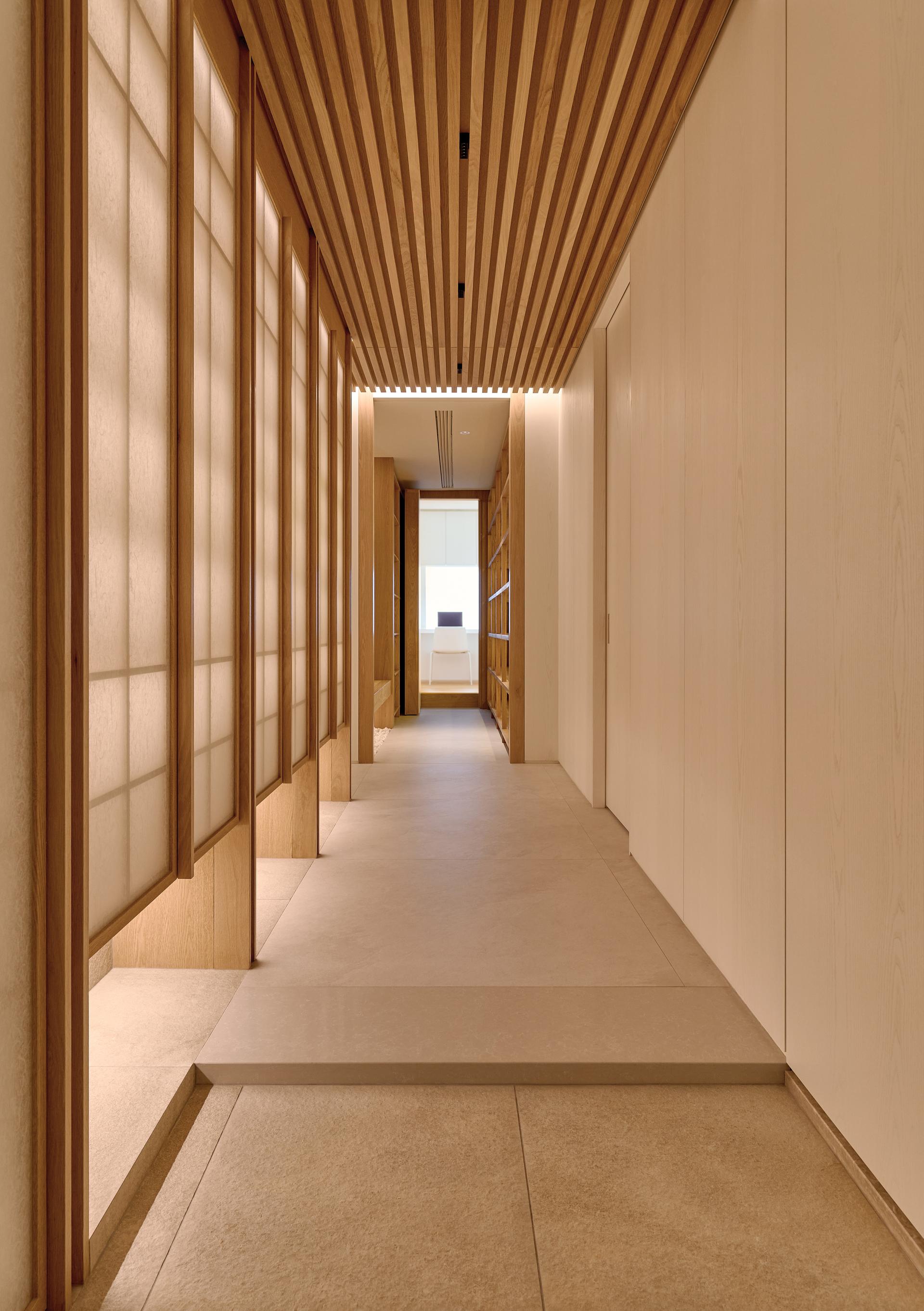 The true structural heart of the project is wood, selected and installed both as a material and a sensory device. The surfaces are intentionally tactile, evoking the scent, touch and sense of time characteristic of traditional Korean architecture, all brought to life through expert craftsmanship. The grain of the wood, the juxtaposition with stone and the artisanal care of the bespoke furniture build a spatial grammar based on slowness and material honesty. In this respect, the studio’s work stands out for its ability to integrate traditional craftsmanship with contemporary precision, moving beyond the risk of a merely aesthetic reinterpretation of tradition.