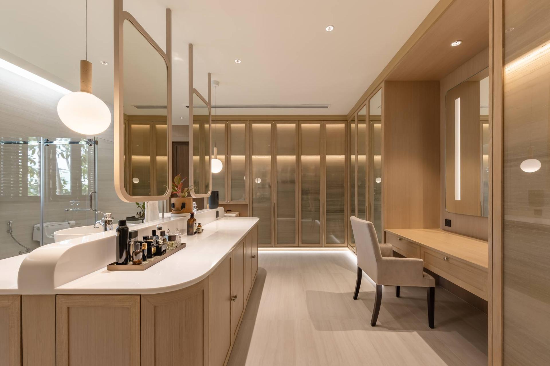 The house is arranged on three levels beneath a distinctive single-pitched roof. From the outside the home appears to be just one storey high, the sloping roof concealing its true scale. To achieve this effect, the studio explored multiple forms and experimented with different roof angles before settling on the final design. Inside, the layout encourages interaction between family members while preserving privacy. A central courtyard connects the living room, kitchen, dining area and guest rooms, creating a comfortable, inviting atmosphere. The same sense of warmth can be found in the interiors, which were also designed by IF and feature surfaces clad with porcelain stoneware tiles from COEM. The stone-effect Cardoso collection in the colour Corda was chosen for the large kitchen floor, while Flow, inspired by the elegance of Silk Georgette marble in White, was used on the floors and walls in the large bathroom – an intimate and elegant space complete with wardrobe and make-up area. On the second and third floors, the bedrooms are located at the rear of the house to ensure privacy while maintaining views of the living spaces through the central courtyard. “Roof House is all about hidden charm,” says IF. “From the outside you would never expect to find such an open, interconnected and carefully designed family home.”