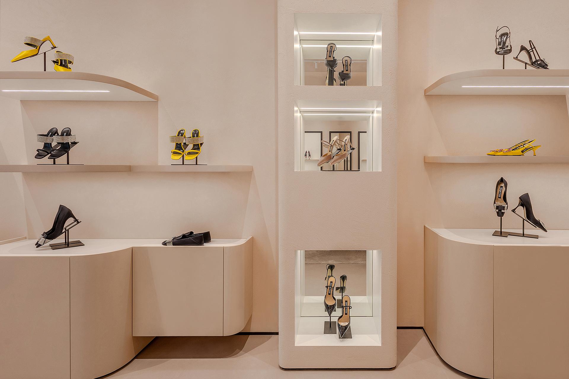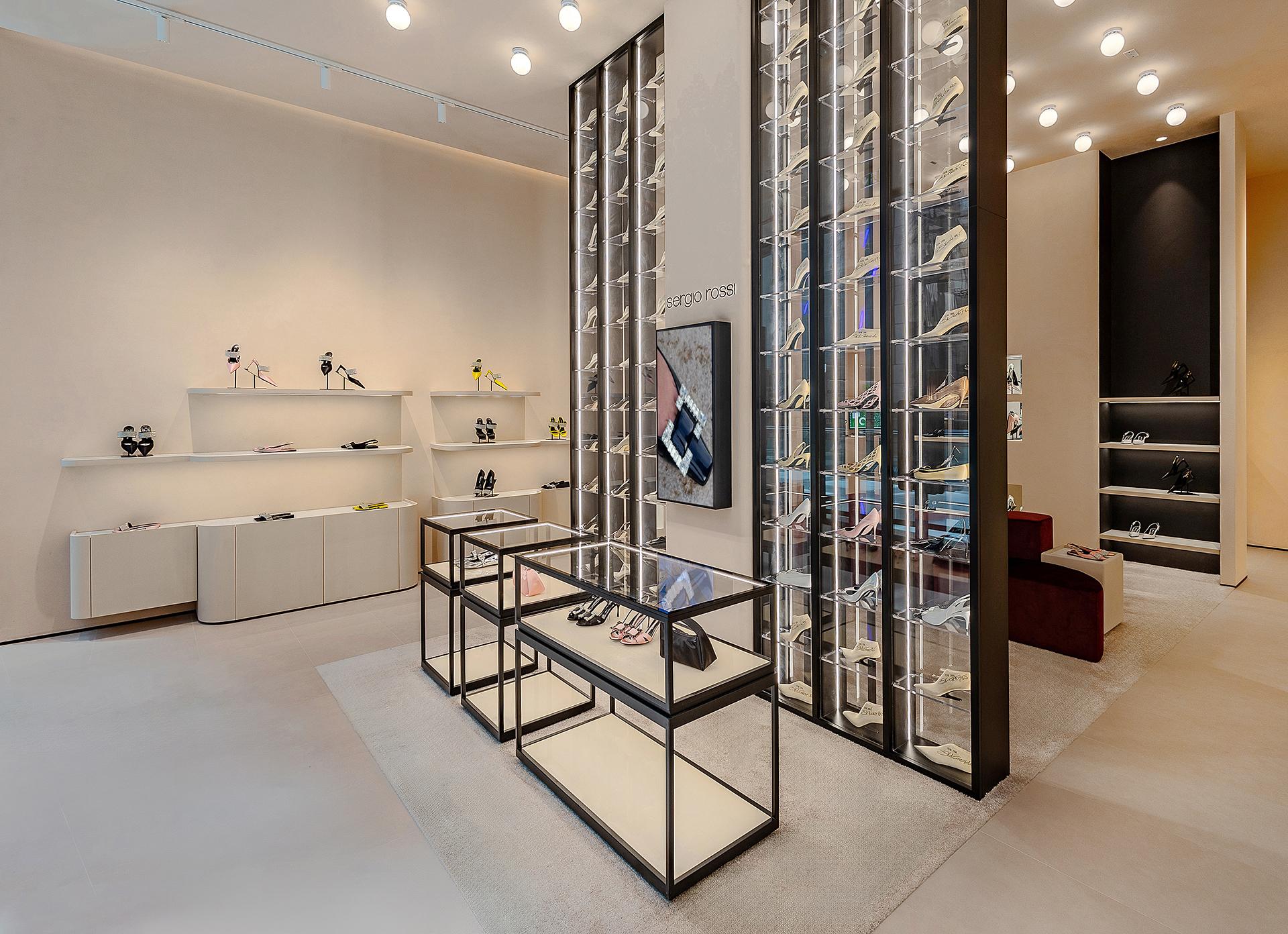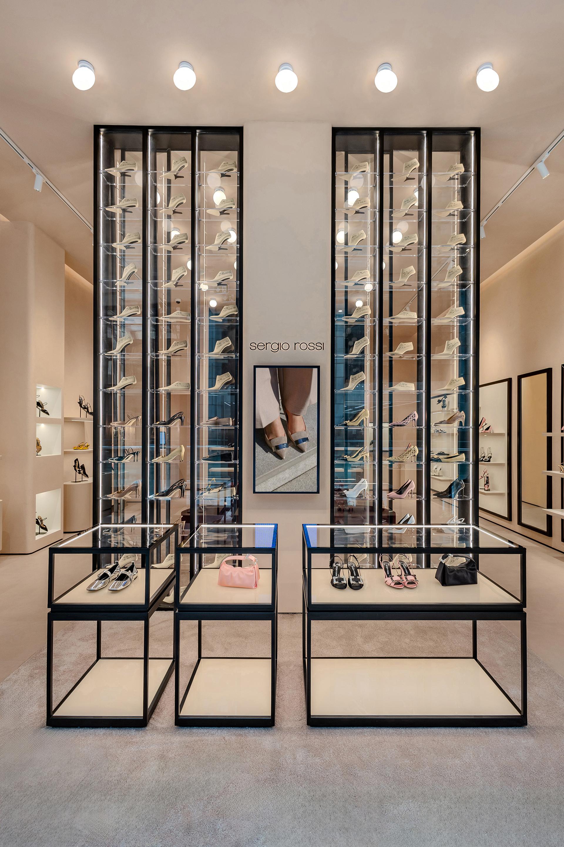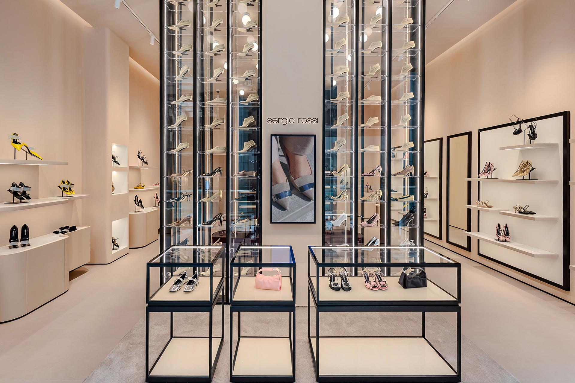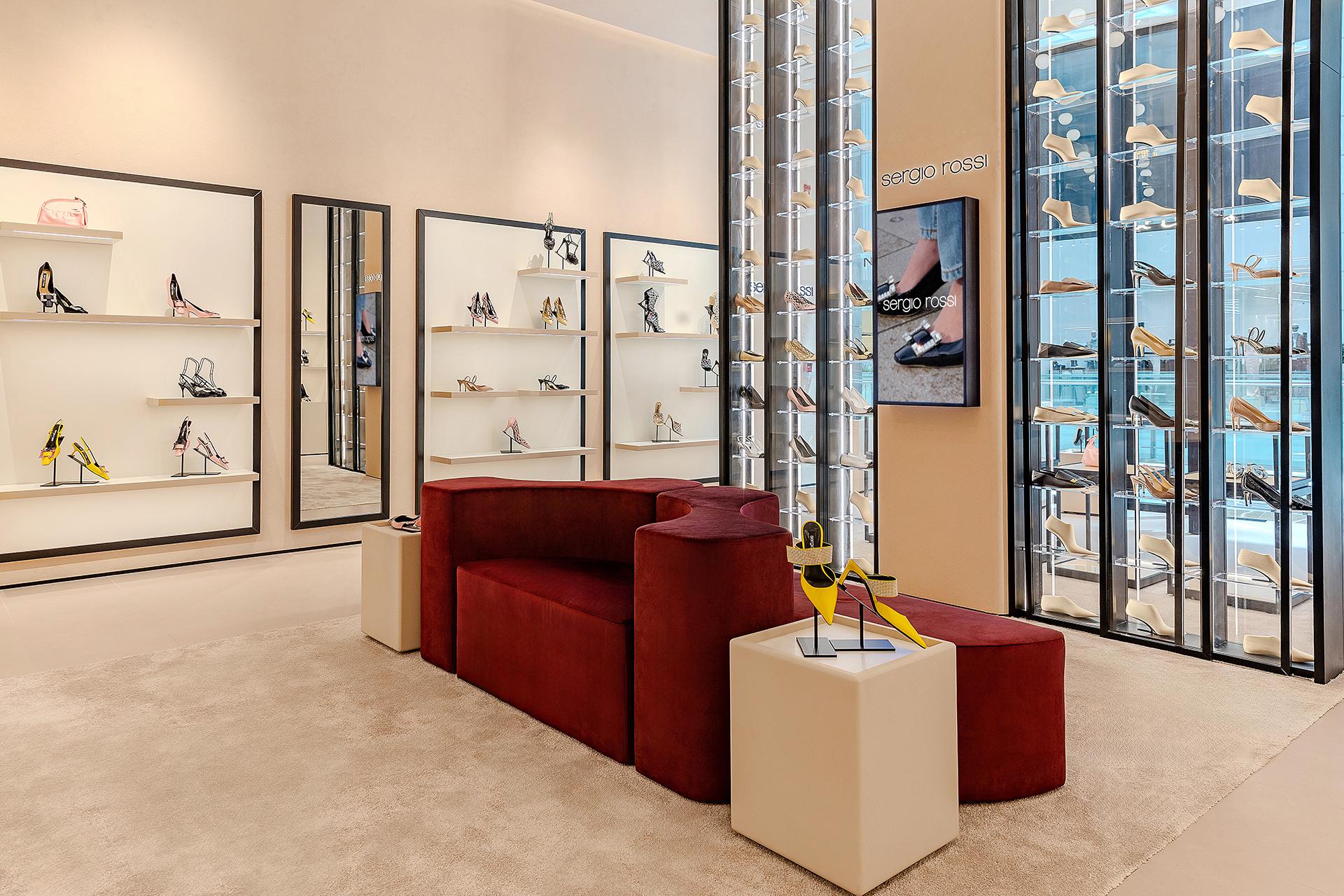 Located in Fashion Avenue at the Dubai Mall, the new 123-square-metre Sergio Rossi store pays tribute to the world-famous elegance of Italian craftsmanship. The design concept aims to express the brand’s identity through interiors in which Italian style is evident in every detail, shade and inspiration. The in-house store planning team at Sergio Rossi explain the design process: “The Sergio Rossi Store project in Downtown Dubai was managed entirely by our team. Drawing inspiration from the concept behind our flagship store in Via della Spiga 26 in Milan – while reinterpreting some of its elements – we developed a fresh, original space with a number of distinctive new features. One of these is the Heritage Wall, an iconic element that powerfully conveys the brand’s identity and history.”