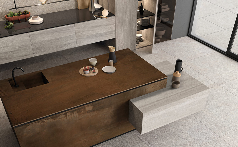 Thanks to advanced production technologies and intrinsic qualities such as strength and non-absorbency, Italian ceramic products have expanded into high-value, fast-growing niches within the furniture sector and are now used to clad countertops, cupboards, tables and even doors