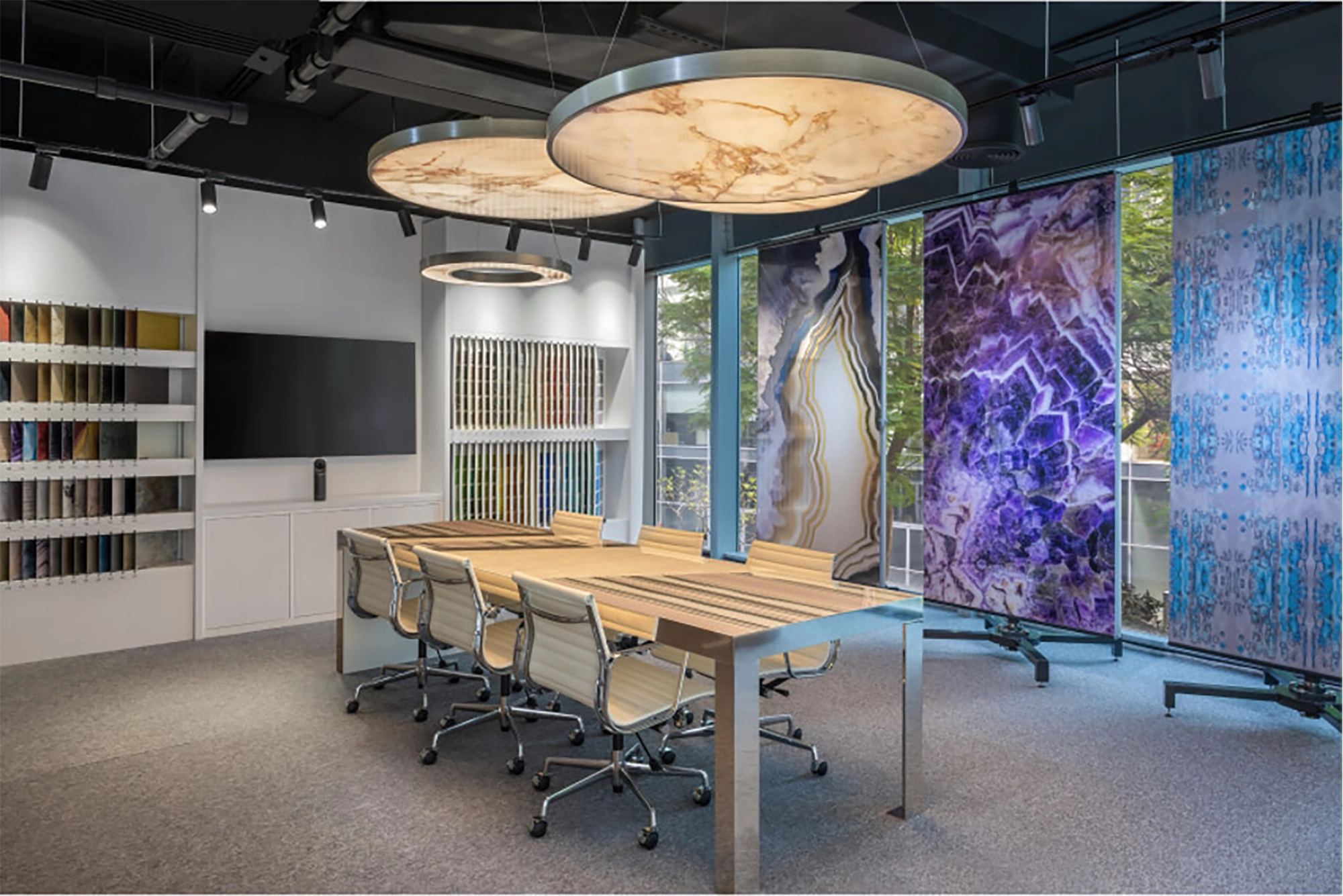 Located inside the renowned Dubai Design District (D3), the SICIS showroom allows visitors to explore the company’s wide range of floor and wall coverings and admire their aesthetic, creative and technical qualities. The showroom hosts a wide range of solutions for all design needs along with examples of the many different applications of Vetrite sheets, from their use on walls as decorative panelling to structural applications such as parapets, canopy roofs, stairs and curtain walls.
