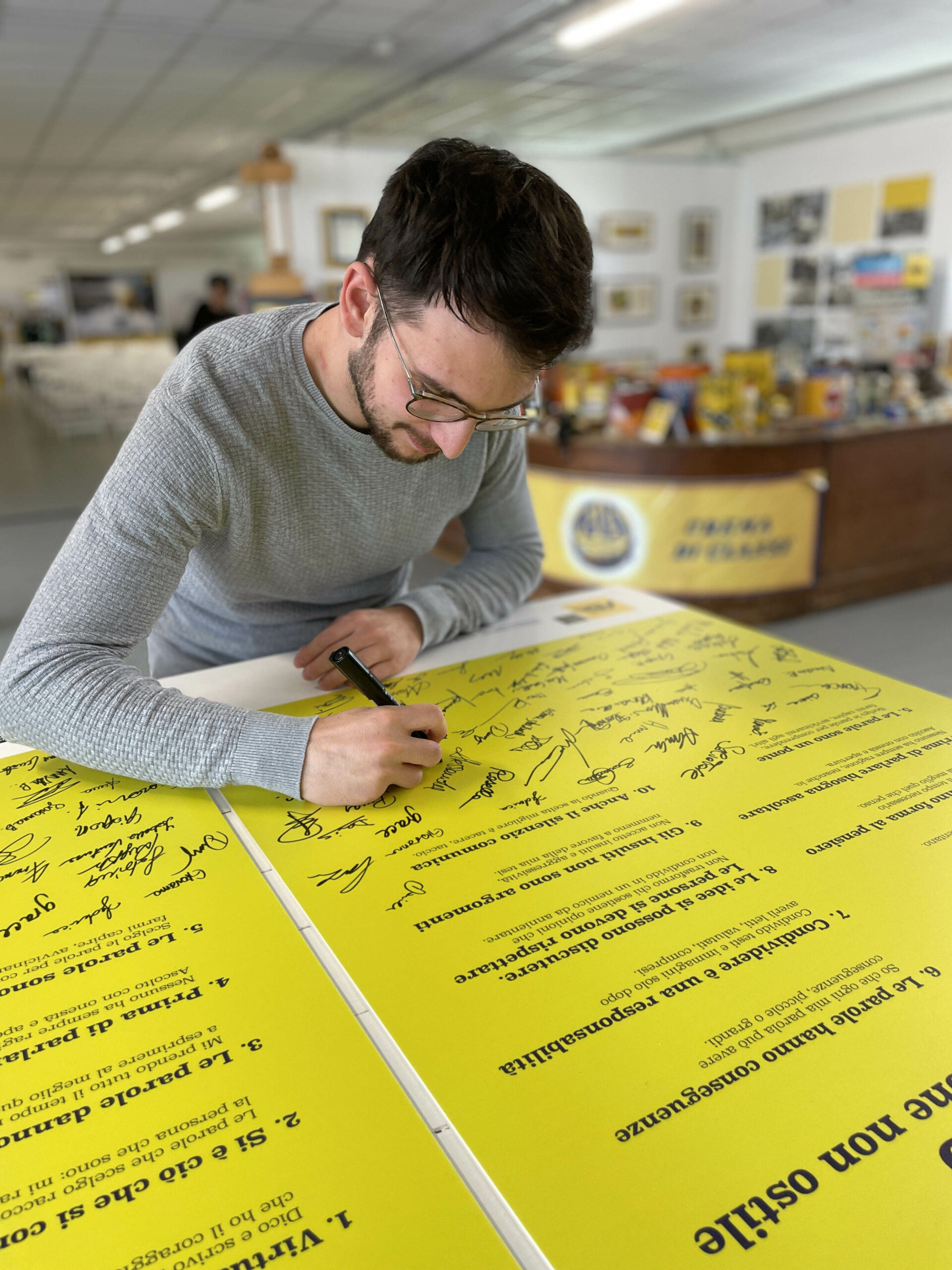 Nell’anno dell’80° a siglare il Manifesto, insieme alla Presidente Rosy Russo, sono stati i due Amministratori Delegati di Fila Solutions Francesco e Alessandra Pettenon, in occasione di un evento Corporate e di formazione interna, nella sala del Museo aziendale, alla presenza di tutti i collaboratori della sede italiana. Prima nel settore a farsi paladina di un argomento così significativo, che tocca il concetto di Cura della persona e soprattutto dei sentimenti di ognuno, focalizzandosi sulla parola, base di tutte le interazioni umane, FILA entra a far parte di una community online contro la violenza delle parole.