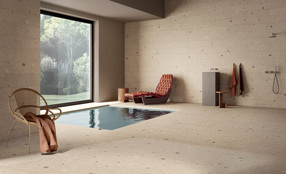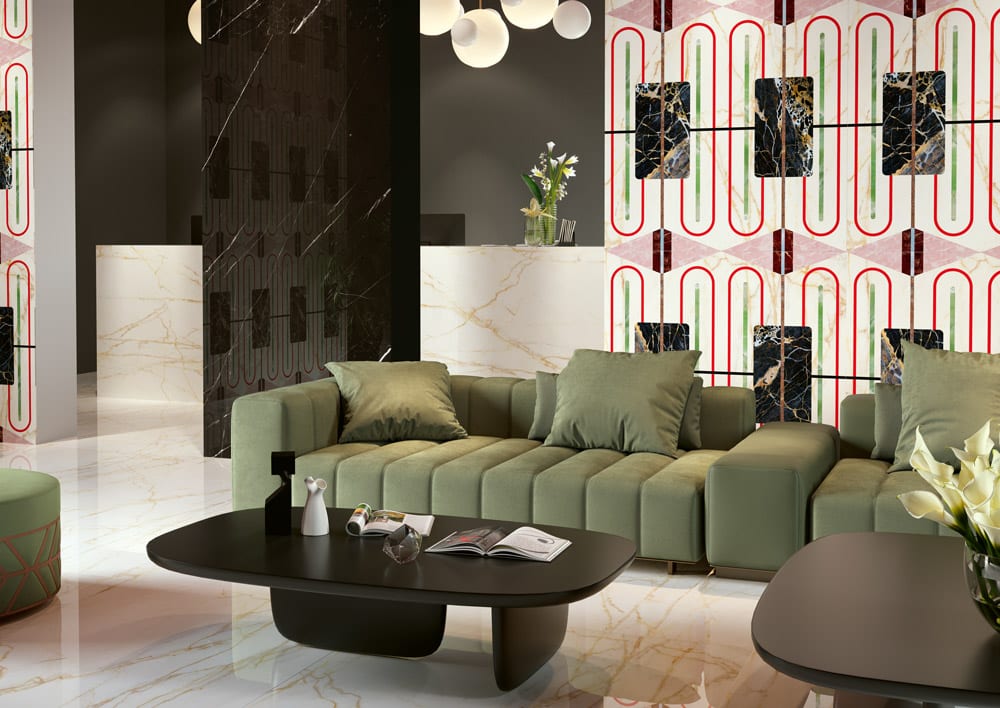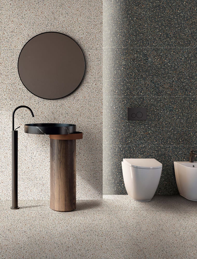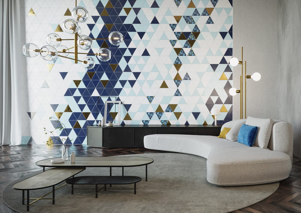 Rien n’éblouit comme un sac rempli de confettis. L’effet est le même que celui de ces carreaux dans les espaces intérieurs. Qu’il s’agisse de kaléidoscope ou de fragments de formes flottants, les motifs donnent un élan d’énergie aux sols et aux murs. Même la pierre mouchetée et les anciennes techniques de revêtement de sol telles que le terrazzo vénitien peuvent ajouter un effet esthétique intéressant et aider à développer un design contemporain et cohésif. Cette tendance fonctionne très bien sur les carreaux extra-larges qui réduisent les joints au minimum et permettent au motif de briller.