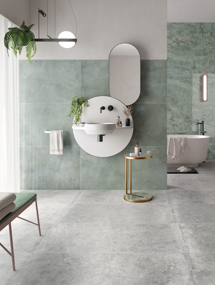 Cette année, avec le bleu et le vert dominants, l’émeraude ayant été annoncée comme la couleur préférée des designers et le bleu classique proclamé Pantone de l’année 2020, il n’est pas surprenant que le bleu-vert soit la couleur favorite de nombreuses collections de carreaux italiens. Les tendances en matière de couleurs reflètent les émotions générales et l’humeur de la société et, selon les théoriciens de la couleur, le bleu-vert combine les effets tranquilles du bleu avec le sentiment optimiste du vert, qui est bien nécessaire en ces temps incertains. Les teintes bleu-vert ont également de fortes associations avec l’eau – du turquoise des lacs glaciaires à l’aigue-marine de la Méditerranée – et ces teintes peuvent aider les gens à retrouver le calme et la tranquillité d’esprit même sans voyager.