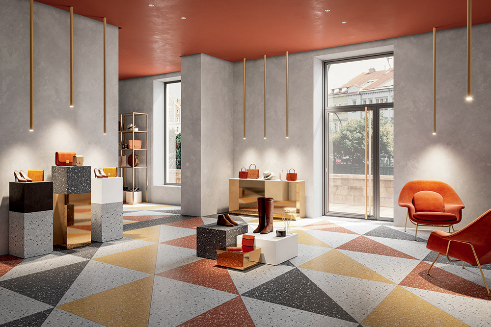 Les fabricants italiens ont une culture qui plonge ses racines dans le design et l’artisanat, c’est pourquoi, dans leurs collections, ils font souvent référence à des motifs classiques et à des styles historiques. Cette fois, certains se sont inspirés des sols luxueux que l’on trouve encore dans les villas palladiennes ou les maisons hollandaises construites il y a des siècles. D’autres ont ajouté une touche de modernité aux traditions céramiques, de la majolique dans les compositions en patchwork jusqu’aux motifs du milieu du siècle dernier avec finitions antidérapantes.
