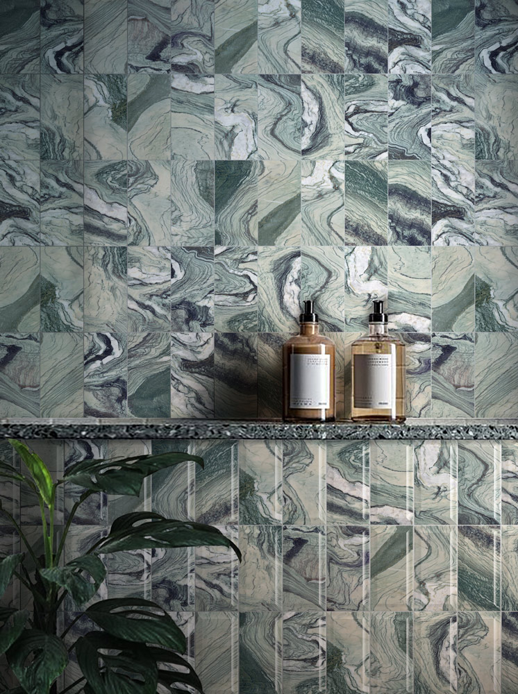 Avec ses formats extra-larges et ses profils super fins, le carrelage céramique devient une alternative au papier peint de plus en plus attrayante. De nombreux fabricants proposent de larges gammes de motifs qui mettent en valeur les capacités artistiques des designers italiens combinées aux avantages durables du grès cérame. Au Cersaie, cette année, les grands motifs floraux et historiques tels que le tissu, la chinoiserie et le damas ont été très appréciés, tandis que les fabricants italiens continuent d’expérimenter l’aspect marbré, offrant des effets visuels admirables tels que le bookmatching et les veines qui se poursuivent sur plusieurs dalles.