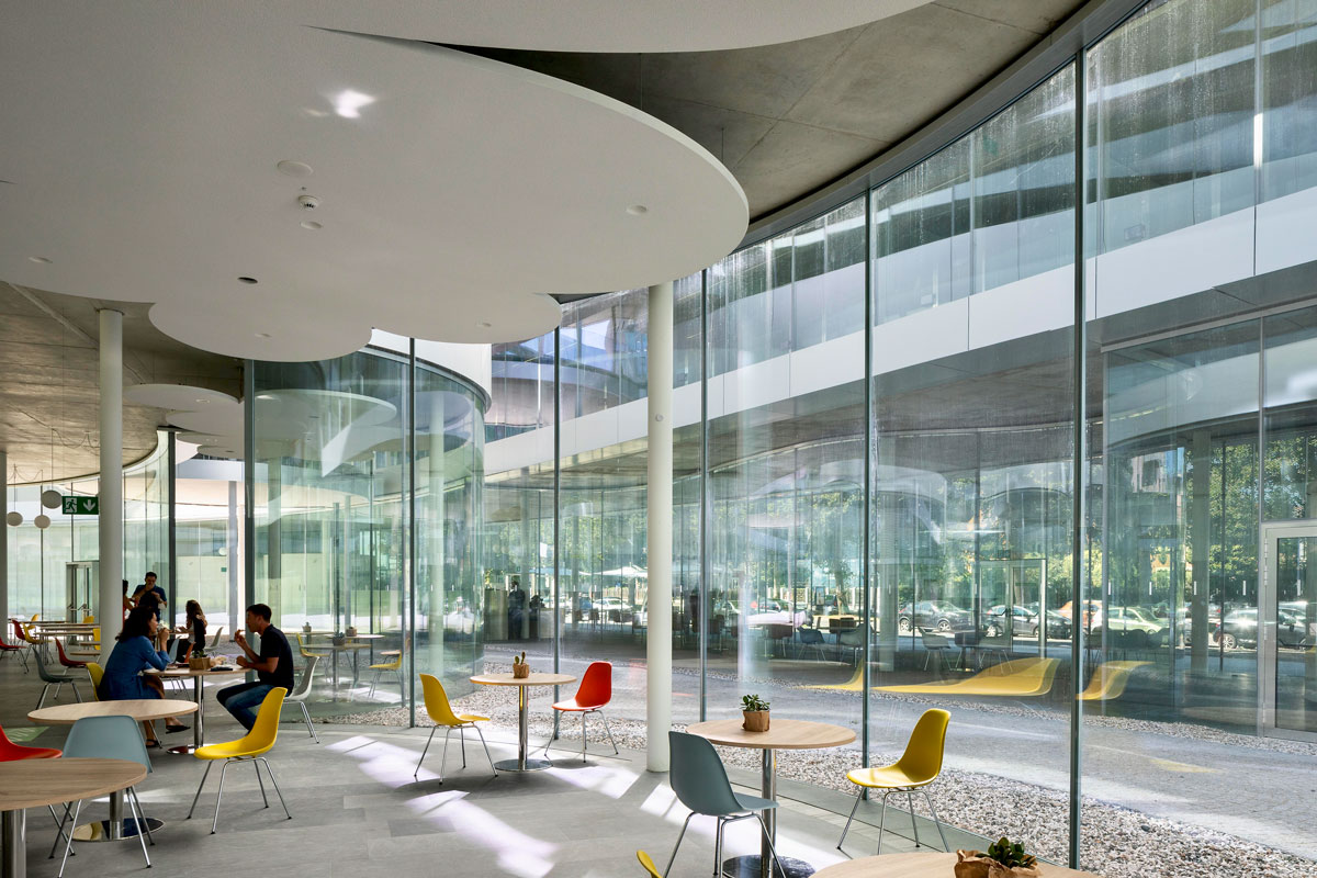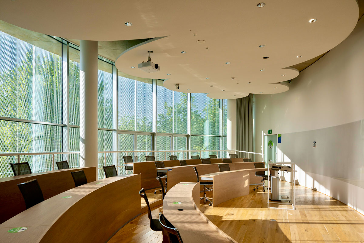Il n’y a rien de formaliste, tout a un rôle, il y a toujours une raison pour chaque choix de conception. Il suffit d’entrer dans les détails techniques pour comprendre qu’il ne s’agit pas de solutions ‘gestuelle’ ou autoréférentielles. La forme courbe des salles de classe a été conçue de manière très précise : la largeur est définie par des critères spécifiques tels que la largeur des assises et des couloirs, correspondant aux modules de façade, à la distribution des colonnes et ainsi de suite. Le bâtiment s’élargit et se rétrécit en fonction de la distribution interne. Chaque module de verre correspond à deux modules de tôle en métal déployé. Toutes ces variables ont abouti à une disposition très spécifique, sans rien d’aléatoire ni d’arbitraire. Résultat : l’espace est efficace et fonctionnel.