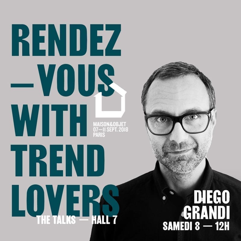 A l’occasion de Maison&Objet, salon international dédié à la décoration intérieure qui aura lieu du 7 au 11 septembre 2018, se tiendra un rendez-vous important à ne pas manquer intitulé « Céramiques et surfaces conjuguées au futur sous le regard de Diego Grandi ». Ce colloque aura lieu le samedi 8 septembre à 12h dans la salle de conférences The Talk située dans le Hall 7 du Parc des Expositions de Paris Nord-Villepinte.