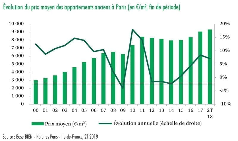 D’ailleurs, si nous examinons les prix de ces biens, nous voyons qu’ils sont à la hausse. Au deuxième trimestre 2018, le prix moyen des logements haut de gamme a atteint 9 300 euros/m², soit une hausse de + 7,1% sur un an et la valeur la plus haute après une période de baisse des prix, qui a duré de 2012 à 2015, et une remontée progressive à partir de 2016. Résultat : 40% des appartements à Paris ont été vendus à plus de 10 000 €/m².