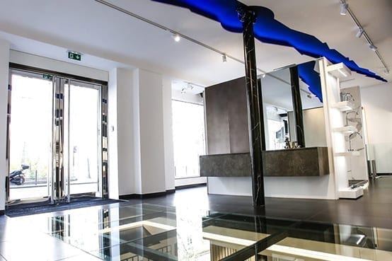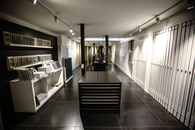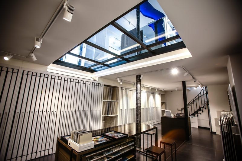 Le showroom David B de la rue de Charonne, qui fait plus de 750 m², est installé dans un ancien local industriel entièrement repensé sur deux étages, couvert par une verrière lumineuse. Celui de la rive gauche (bd Raspail), plus récent, fait 250 m² avec un spectaculaire sol de verre et une vraie « carreauxthèque » en souplex. Nos salles d’expositions sont la vitrine des produits les plus innovants du marché, avec une sélection à la manière de l’épicerie fine : proposer à nos clients avertis le meilleur de l’innovation et du design de chaque industriel.