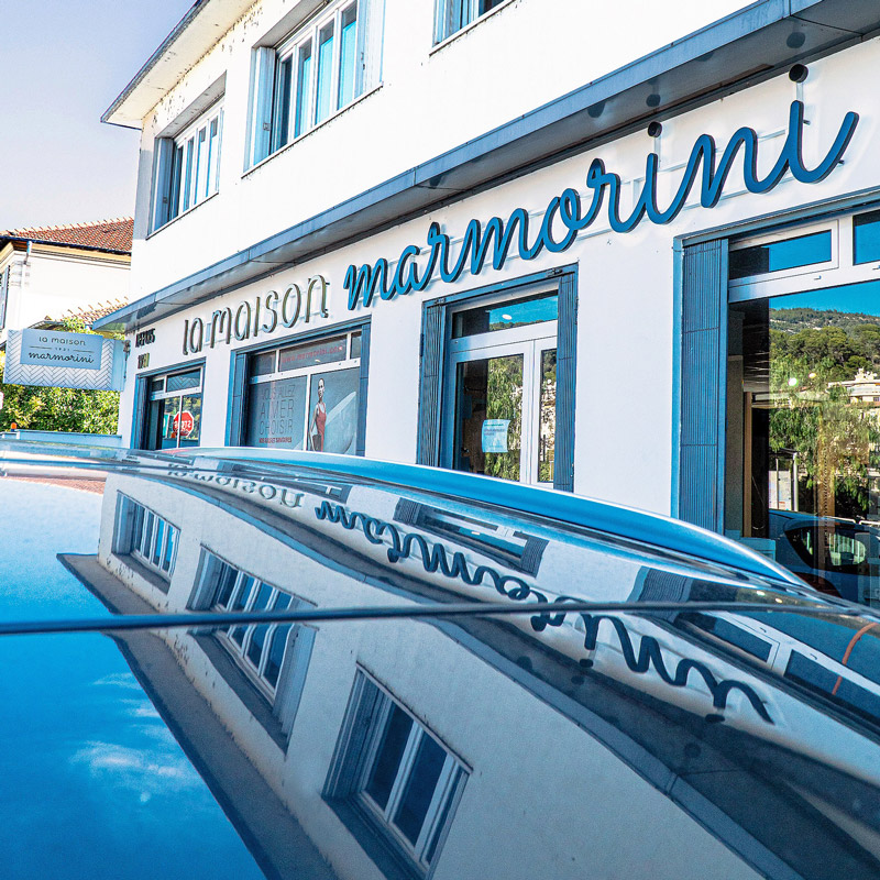 Marmorini a été fondée le 1er avril 1931 par Natale et Ida Marmorini, à l’origine fabricants de granito à La Trinité en lieu et place du magasin actuel. Dans les années 1972, c’est l’arrêt de la fabrication et le début comme négoce, qui achetait ses produits en Italie, en Espagne, en Allemagne, en France et aux Pays-Bas. En 2003, j’ai racheté la société Carrelages Scaramozzino basée à Nice sur le boulevard de l’Ariane, qui deviendra Marmorini Design Nice. En 2005, nous avons élargi notre proposition avec le service sanitaire et en 2013 il y a eu une rénovation très importante des bâtiments de stockage et d’exposition sur La Trinité qui nous a permis de regrouper les magasins de Nice et de La Trinité dans un même lieu. En 2019, le temps du renouvellement a sonné : Marmorini Design devient la Maison Marmorini, avec un nouveau nom, un nouveau logo, une nouvelle identité visuelle, un nouveau site, un nouveau langage de marque et le lancement d’un magazine en ligne. L’année 2019 donne le ton d’une nouvelle page qui rend hommage à toutes ces années durant lesquelles les employés et les clients faisaient partie de la famille.