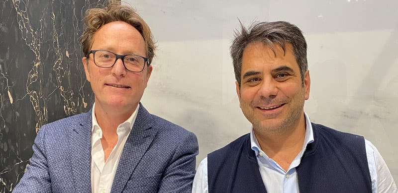 La beauté, le raffinement, le luxe sont des concepts qui nous viennent spontanément à l’esprit quand nous pensons aux marbres, aux mosaïques et aux céramiques. En France, une entreprise a fait de cette identification une vocation, et de cette vocation une réussite entrepreneuriale. Il s’agit de Cristal Marbre, une entreprise qui, en vingt ans d’existence, a su se développer et s’imposer comme l’une des références du luxe à l’échelle mondiale. Ses revêtements de valeur, ses décorations précieuses, ses matériaux élégants et recherchés embellissent les maisons et les boutiques les plus raffinées du monde, comme le château de Varennes, en Bourgogne, ou les magasins Longchamp à Paris, Tokyo, Moscou, Rome, Londres, pour ne citer que quelques exemples. Philippe Guenoun (dans la photo avec Carlo Scavelli), directeur commercial de l’entreprise, nous a raconté l’histoire et les raisons de ce succès.