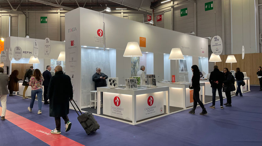Dans le Pavillon 7 PROJECTS du Salon, sur plus de 400 m² de surface, un stand collectif réparti sur trois zones (A134-A156 et B140-B173) signés Ceramics of Italy/ICE accueillent les entreprises Artistica3, Casalgrande Padana, CE.SI. Ceramica di Sirone, Ceramica Mediterranea, Ceramica Sant’Agostino, Ceramiche Atlas Concorde, Fap Ceramiche, Ceramiche Keope, Ceramiche Marca Corona, Ceramiche Refin, Ceramiche Settecento, Cooperativa Ceramica d’Imola, Edimax Astor Ceramiche, Emilgroup, il Ferrone Cotto Impruneta, Franco Pecchioli Ceramica Firenze, Gigacer, Gruppo Bardelli, Gruppo Cerdisa Ricchetti, Keradom, Lafaenza, Litokol, M.I.P.A., Mirage Granito Ceramico, Nuovocorso, Lea Ceramiche, Petracer’s et Simas.